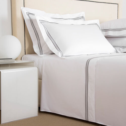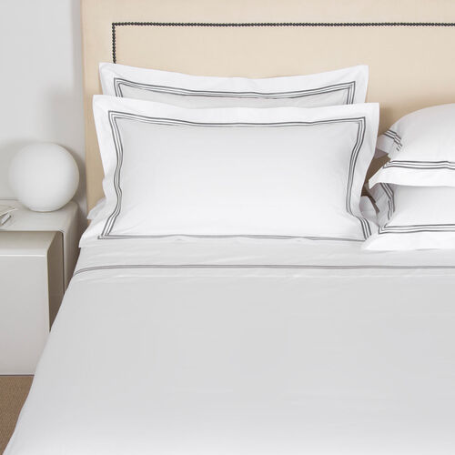 Soft and smooth with high shine, the Triplo Bourdon Sheet Set is crafted from pure cotton poplin - the perfect balance between percale and sateen - and embellished with a three-line embroidery.