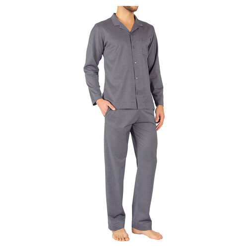 A classic collar pyjama shirt and pant set featuring an understated pattern. Composition: 100% cotton. Made in Italy.