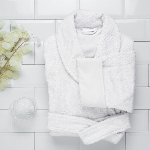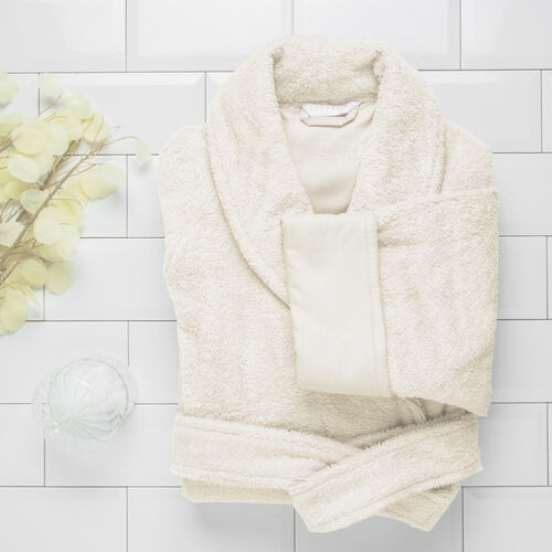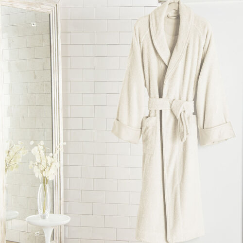 A classic style, the Unito Shawl Collar Bathrobe is a unisex knee-length robe in plush cotton terry, with a self belt and turned back cuffs in cotton sateen. The seams are covered with cotton sateen bias detail for extra comfort and durability. 100% cotton. Made in Italy.