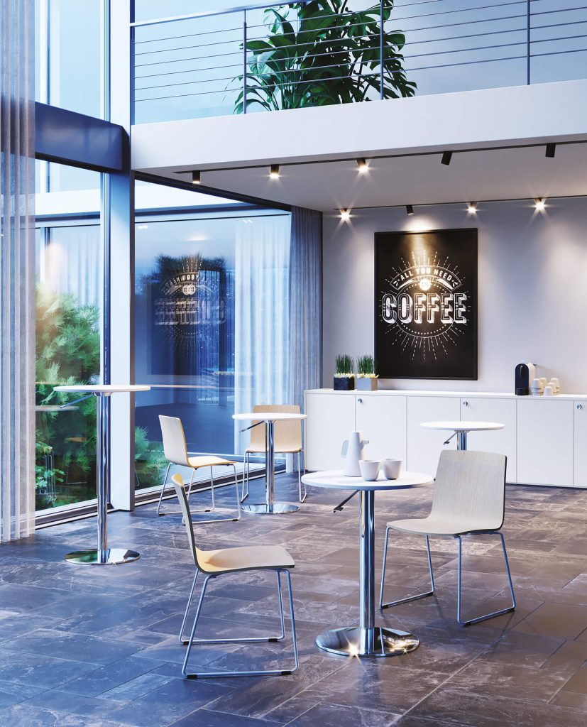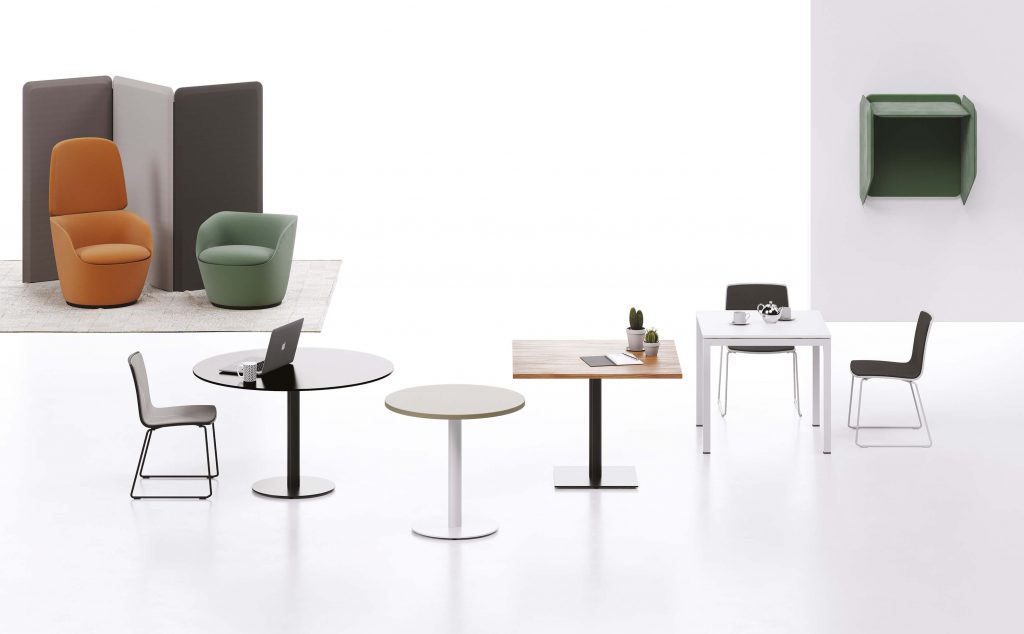 I tavoli di altezza 105 cm diventano luoghi di ispirazioni più che semplici postazioni di lavoro se inseriti all’interno di uffici. Ideali come punto di incontro e comunicazione, favoriscono la collaborazione e al contempo l’efficienza lavorativa. Possono essere utilizzati anche per brevi meeting da svolgere in piedi e promuovono il cambio spontaneo di postura che si riflette positivamente sulla salute.