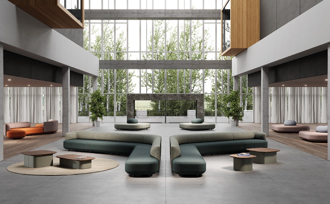 l design accattivante e contemporaneo si adatta con naturalezza ai più diversi contesti architettonici. Le linee solide e geometriche della seduta fanno da contrappunto a uno schienale avvolgente, ampio, dalle linee morbide e plasmate. Il continuo rapporto tra questi due elementi è inoltre enfatizzato da moduli terminali aperti, che invitano alla convivialità e alla relazione con l’ambiente circostante, suggerendo un’atmosfera rilassata e domestica.