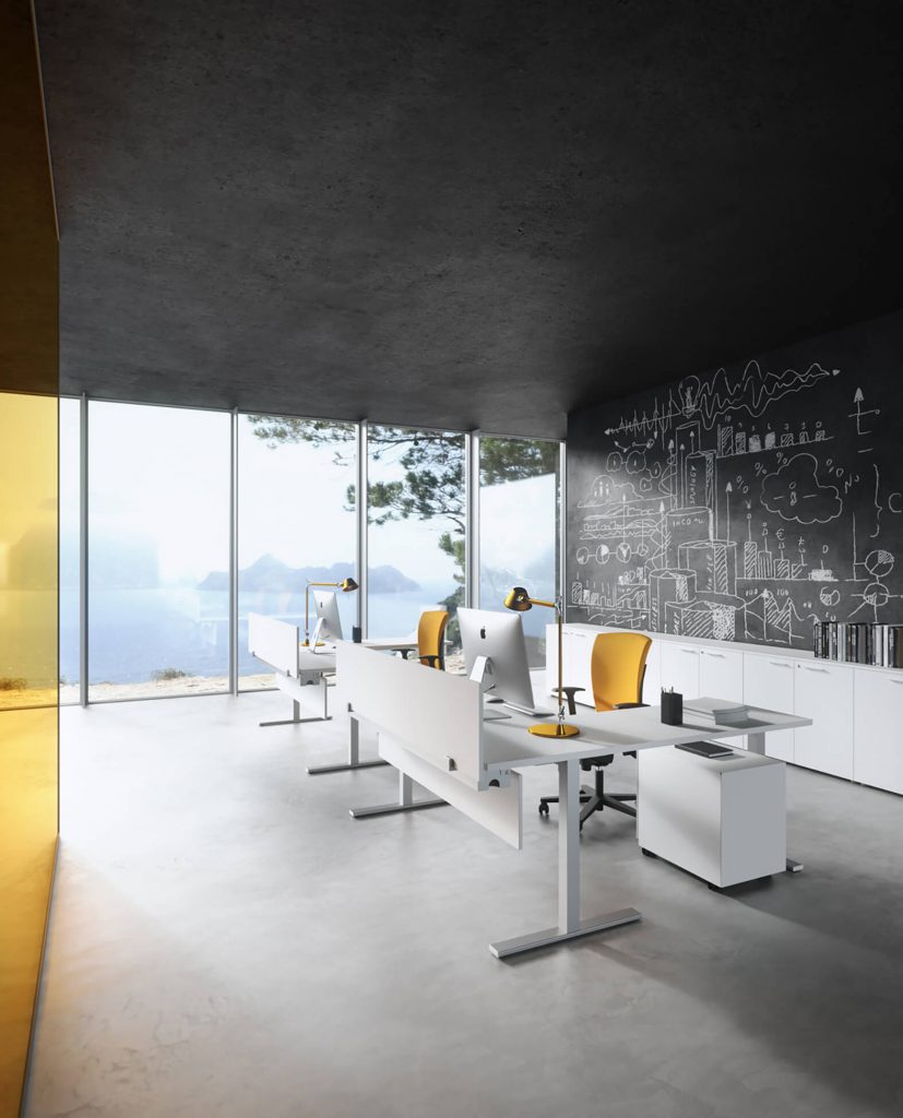 Le scrivanie Pop Ace proposte in più lunghezze e profondità possono essere integrate con mobili di servizio portanti, cassettiere ad altezza scrivania e piani di allungo adattandosi alle esigenze specifiche di ogni utente. L’installazione di screen divisori e modesty panel offrono tutta la privacy necessaria a ritrovare la concentrazione durante le ore di lavoro.