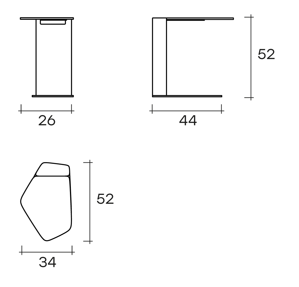 Tavolino di servizio con piano in vetro da 10mm fuso a gran fuoco, retroverniciato Testa di Moro oppure Nero.
