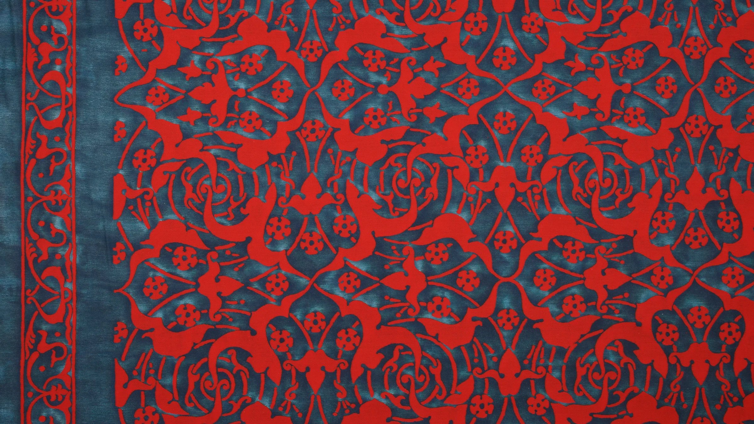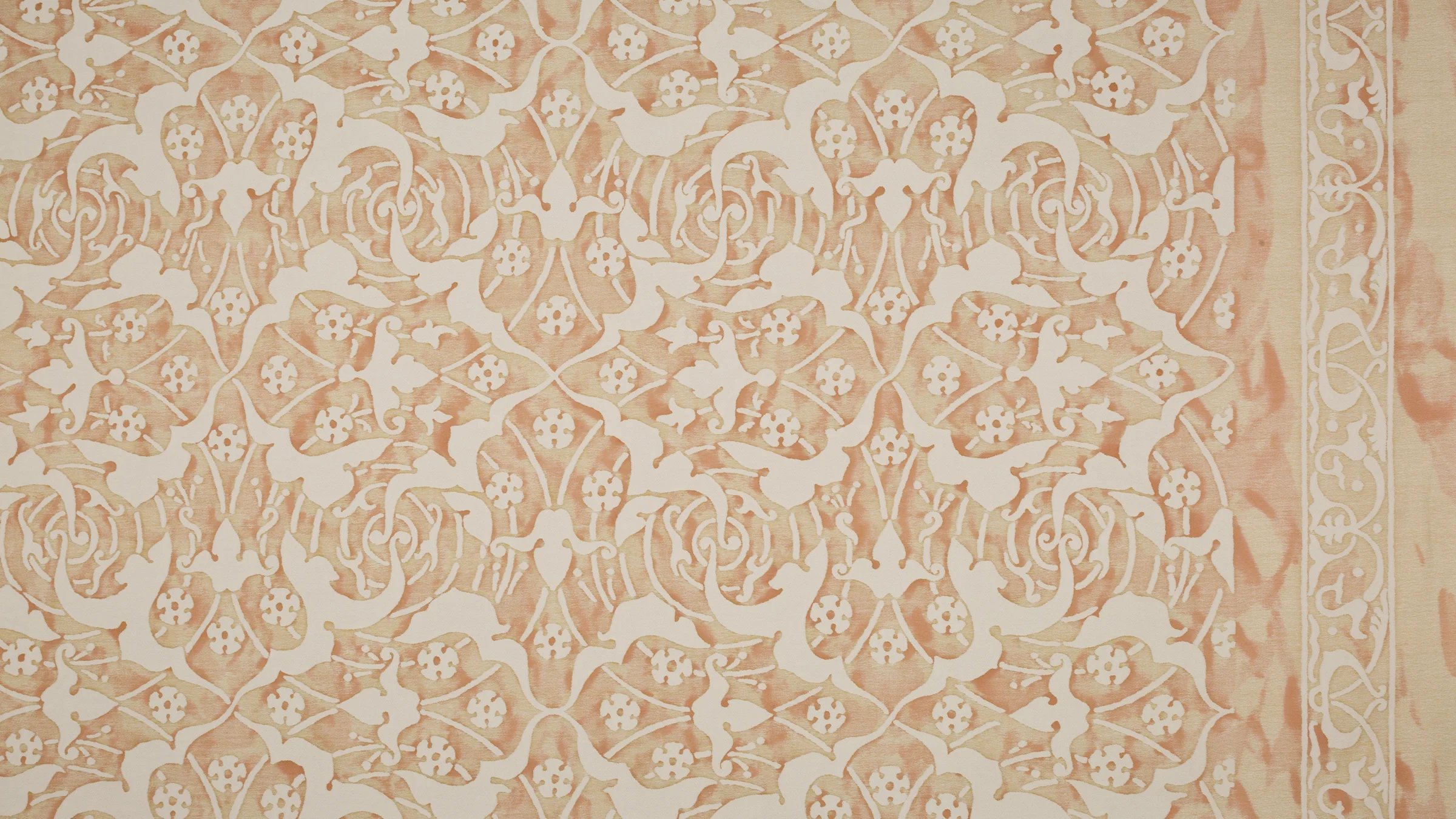 ONEIROI, so named for the Greek gods of dreams, is a hypnotic, 17th-century Persian motif. ONEIROI’s dream-like maze of concentric circles is dotted with five-petaled flowers and playful, scrolling horn-like ornament-- or is it ivory? As Homer wrote in The Odyssey, dreams that enter through a gate of horn are true, and those that enter by a gate of ivory are false.