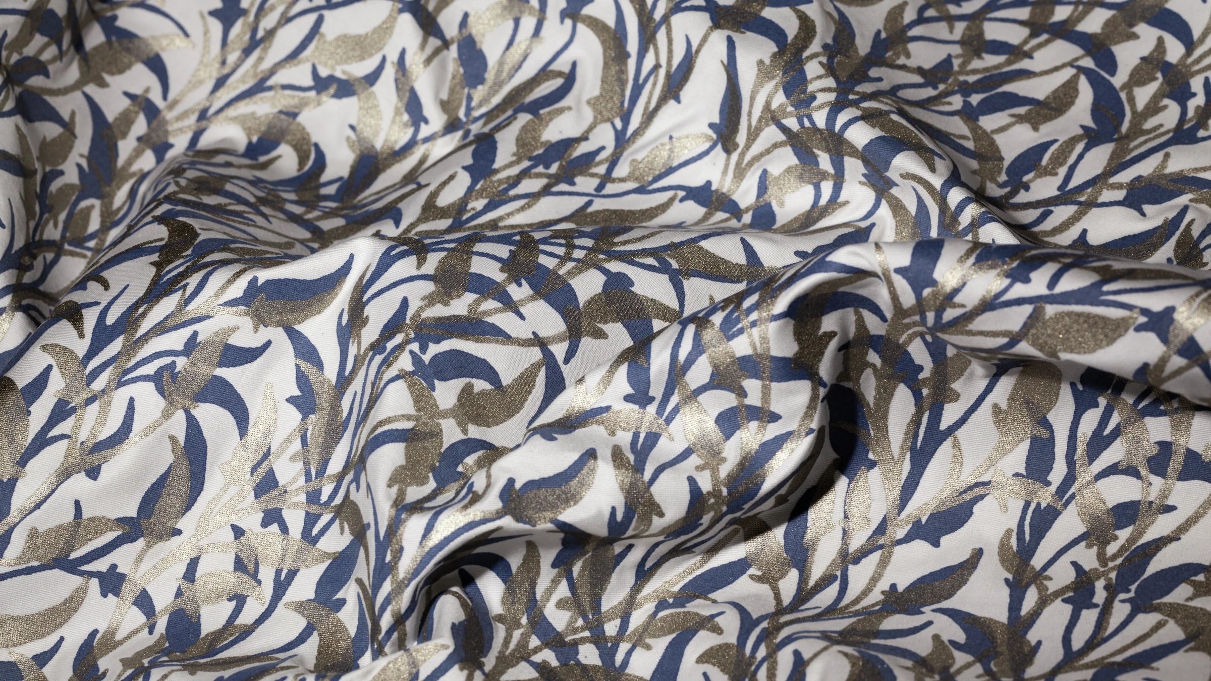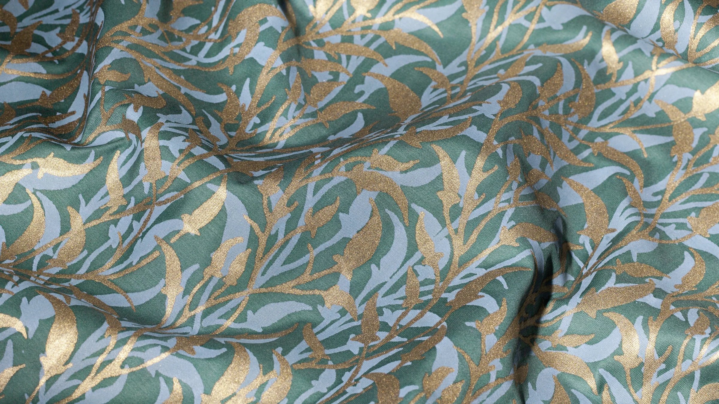The ancient Greek Orpheus, or ORFEO, was much like Mariano Fortuny, with his seamless ability to move between artforms. A musician, a poet, a prophet, ORFEO’s contributions to the arts were legendary, even causing some Greek poets to proclaim that his music and singing could charm both flora and fauna into dance. The frolicking, layered foliage of our ORFEO is filled with movement and the spirit of song and dance.