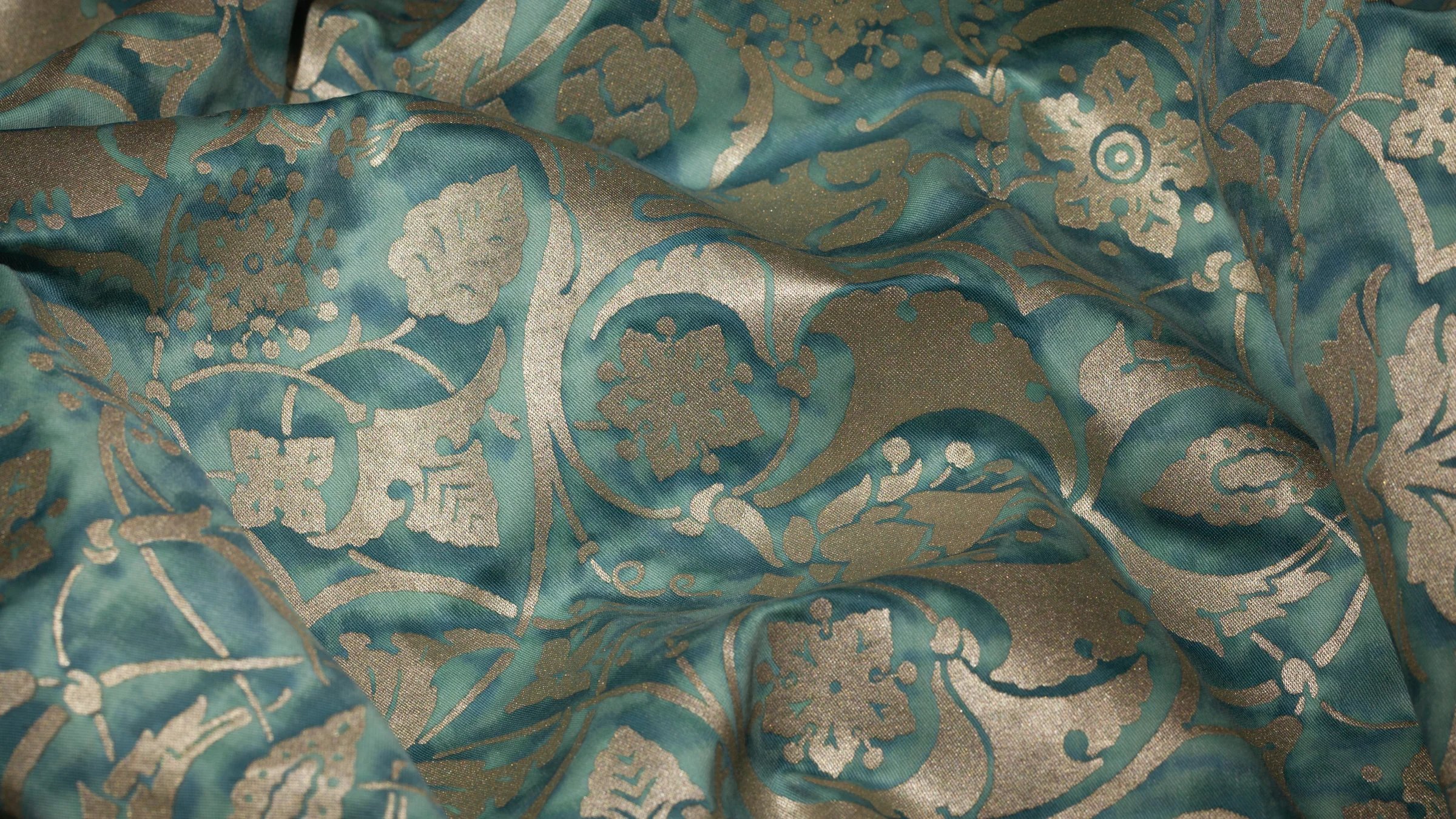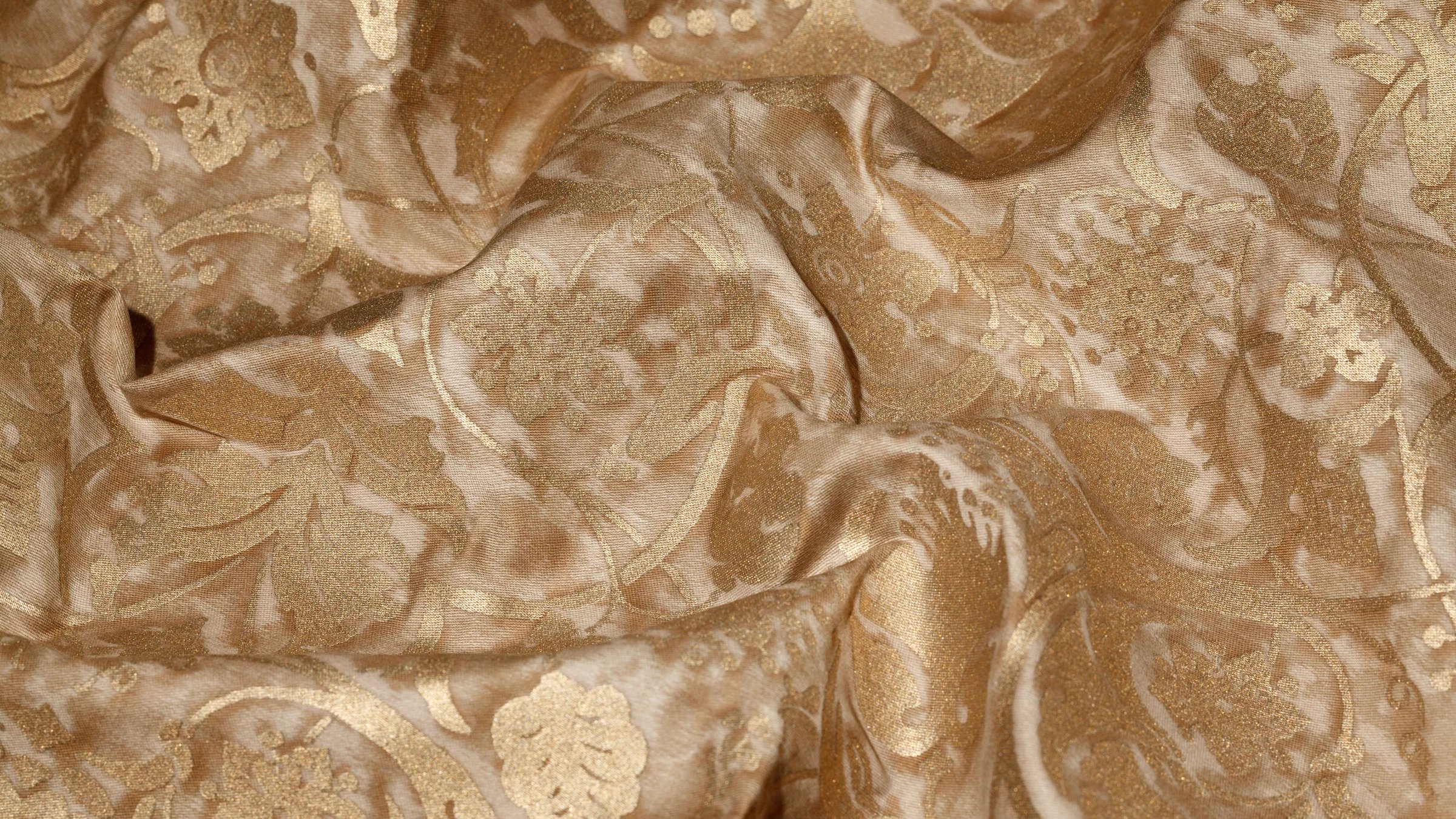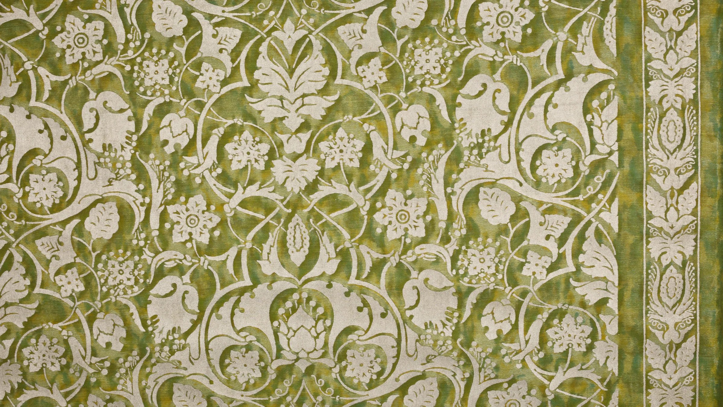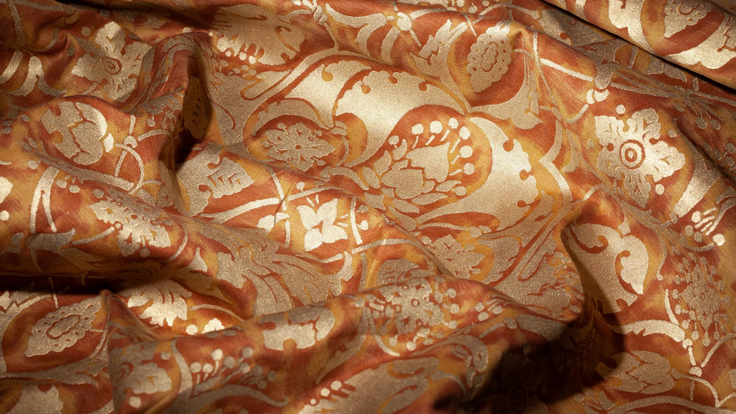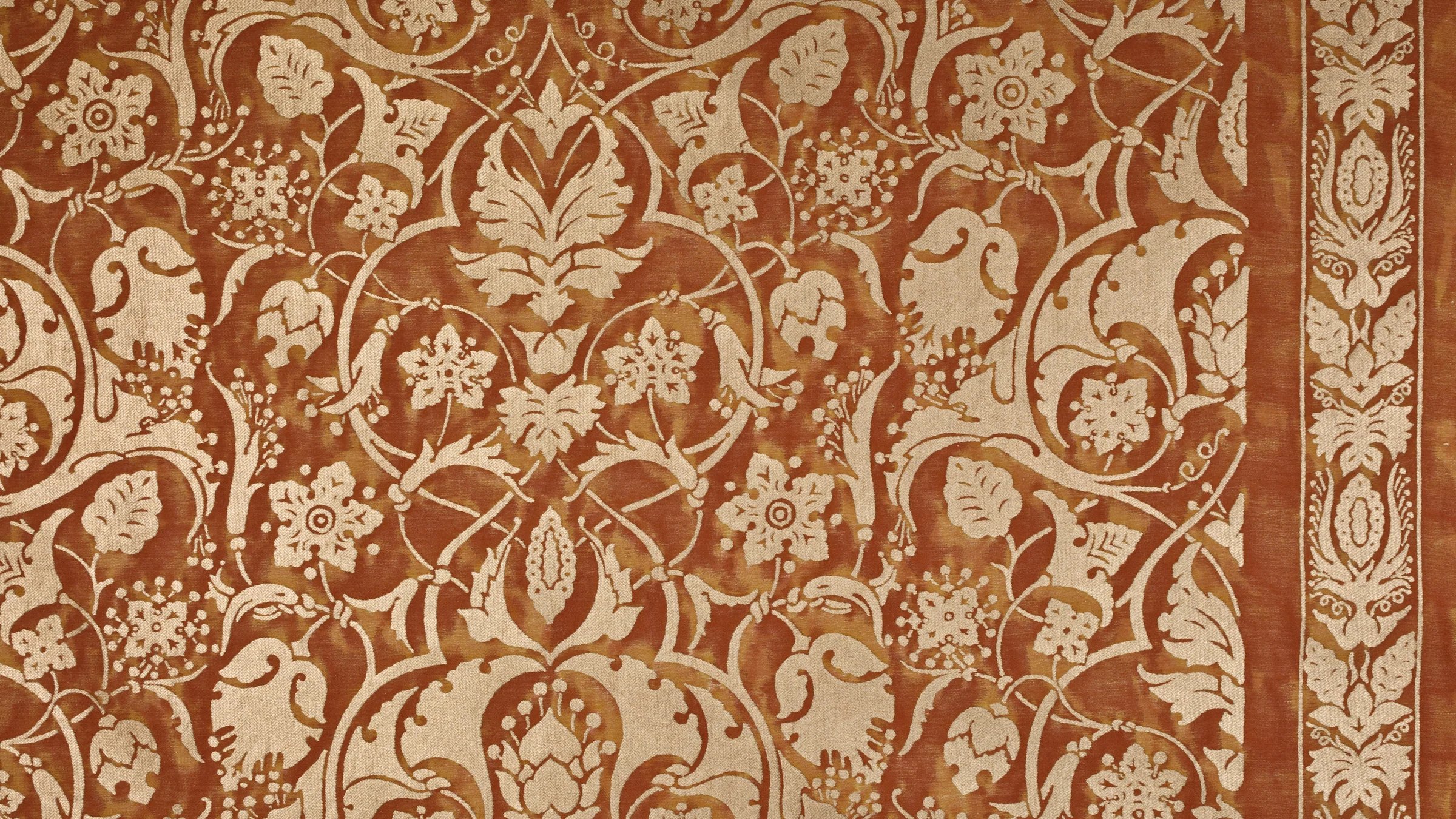 The Paris of Mariano Fortuny’s childhood was filled with excitement and intrigue, as vivid depictions of PERSEPOLIS’s ancient city were first published in Voyages en Perse de MM. Eugene Flanin peintre et Pascal Coste architecte, including over 350 revolutionary illustrations of the ruinous city. PERSEPOLIS, the ceremonial capital of the ancient Persian empire built by Darius the Great, continued to captivate Mariano Fortuny’s imagination years later, inspiring this whimsical and spirited pattern filled with sensual Persian floral, leaf, and pomegranate motifs.