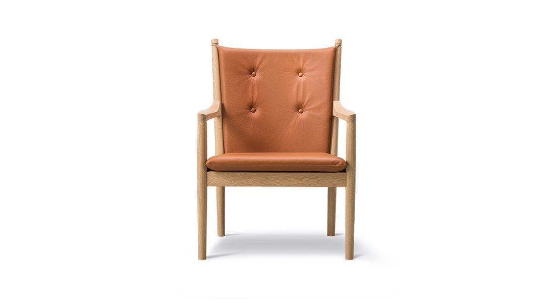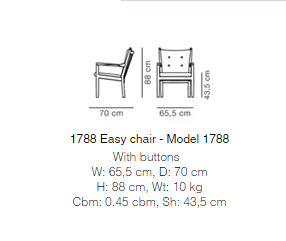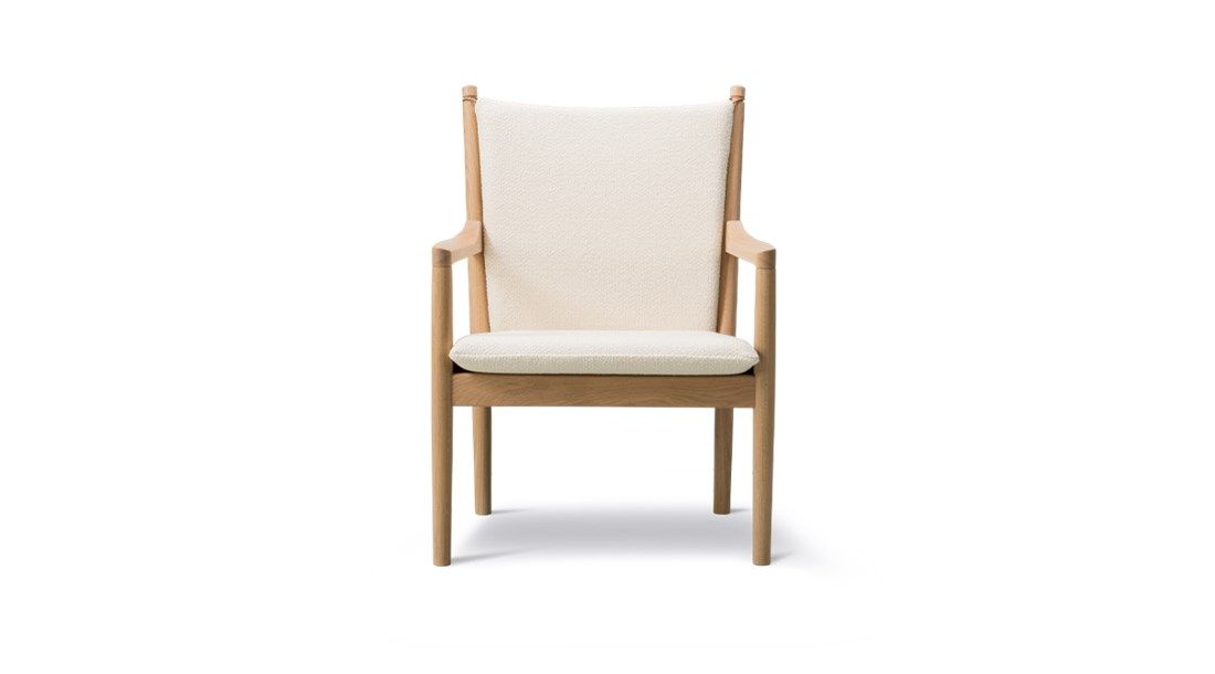 The 1788 chair features a stunning profile in the sloping armrests, reflecting Wegners signature sculptural details and talent for working with wood.