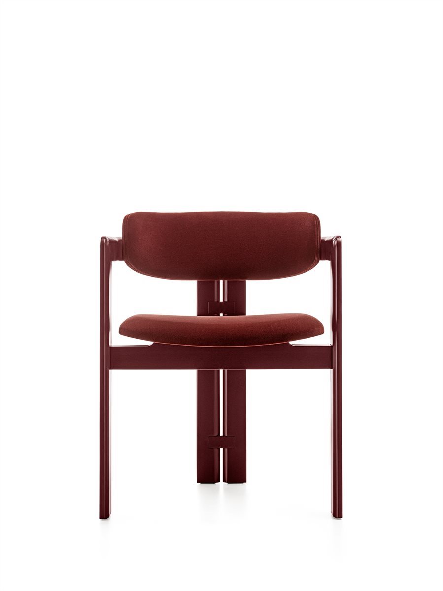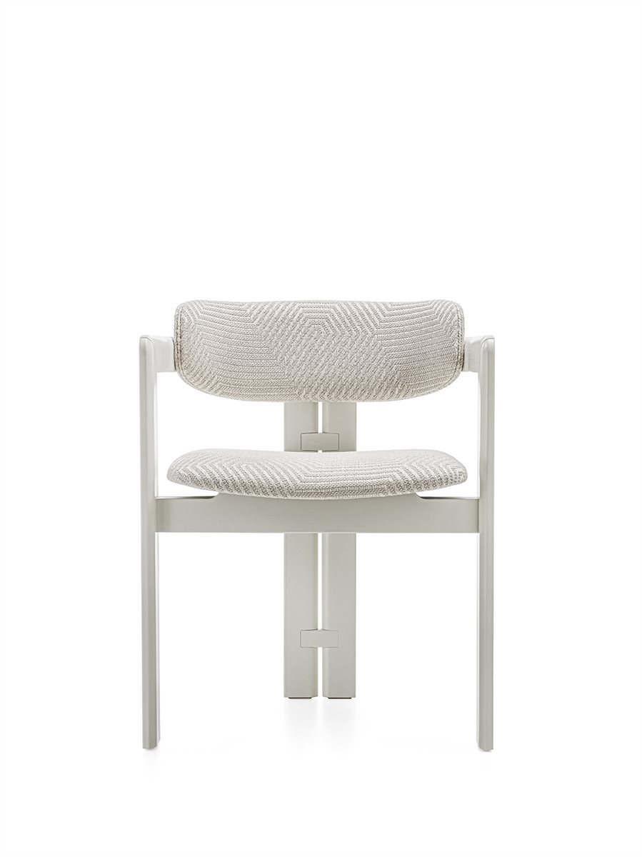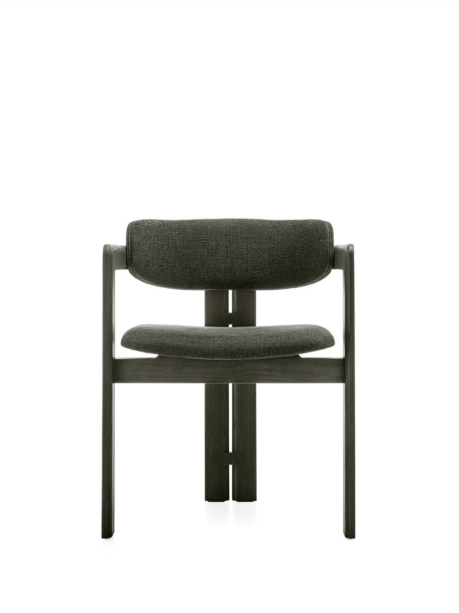 Poltroncina con struttura in massello di legno curvato. Disponibile in frassino naturale o in frassino tinto nero poro aperto, tinto tabacco poro aperto, tinto "Pure" bianco poro aperto o tinto grigio smoke poro aperto. NEW Disponibile in frassino tinto creta poro aperto, tinto wengè poro aperto o tinto cenere poro aperto. Disponibile anche versione in faggio laccato opaco poro chiuso nei colori “Rosa Jaipur”, “Verde Provenza”, “Bianco Camargue”, “Bordeaux Etruria” e "Sabbia del Nilo". Seduta e schienale con struttura interna in legno e derivati con imbottitura in poliuretano espanso indeformabile a densità differenziate. Rivestimento in tessuto o pelle nei colori del campionario. Non sfoderabile.
