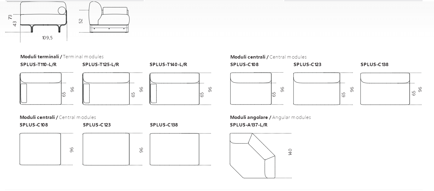 Divano modulare con base in frassino curvato tinto nero poro aperto e dettagli in ottone lucido. Disponibile anche versione laccata opaca nei colori: “Rosso Persia”, “Grigio Londra”, “Nero Giza”, "Bianco Camargue", "Verde Provenza", "Blu Pacifico", "Bordeaux Etruria", "Rosa Jaipur" e "Sabbia del Nilo". Imbottito in poliuretano espanso e piuma d'oca rivestito in tessuto o pelle nei colori del campionario. Modulo terminale fornito di bracciolo terminale cilindrico in piuma rivestito nello stesso rivestimento del divano. Rivestimento sfoderabile, non disponibile per le seguenti categorie: Cat. L1, L2 e pelle cliente/C.O.L. Per la realizzazione di elementi con rivestimento in pelle sono necessarie cuciture aggiuntive rispetto gli elementi con rivestimento in tessuto.