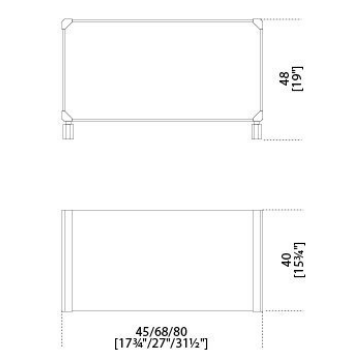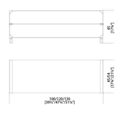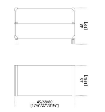 Trolley in 8mm transparent tempered glass. Available with or without shelf. Bright stainless steel metal parts. Satin stainless steel, protected or embossed white or black lacquered brass metal parts on request.