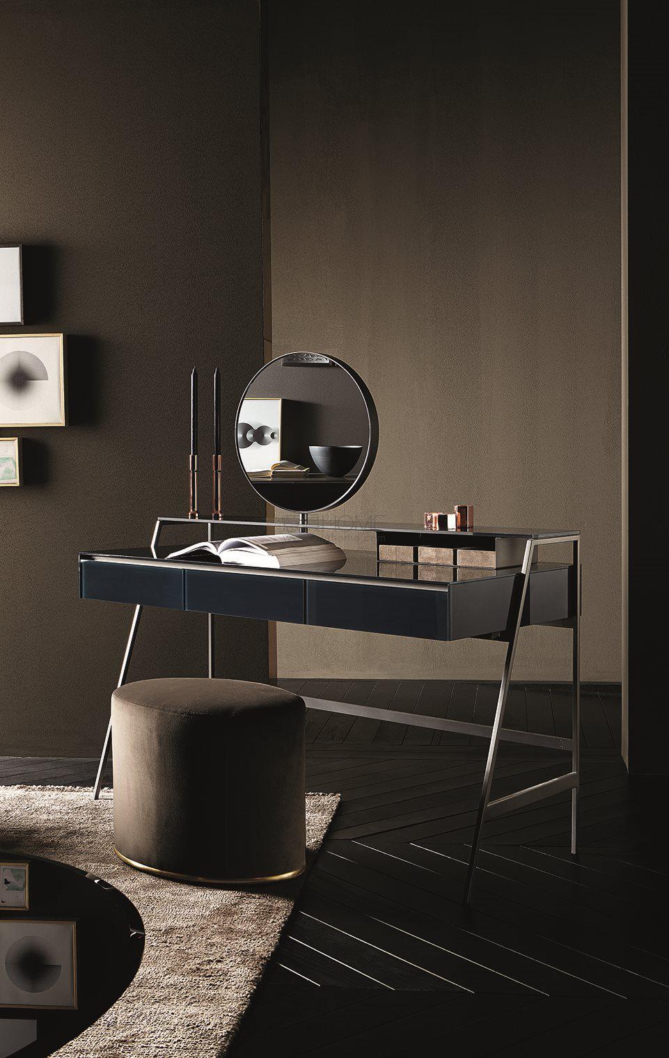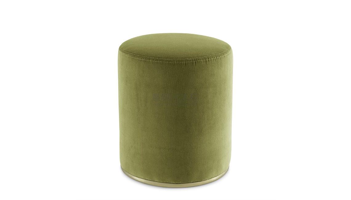 Pouf in non-deformable foam polyurethane in different density and polyester fibre with wooden inside structure. Metal parts in satin brass. Seat and backrest covered by fabric or leather as per sample.