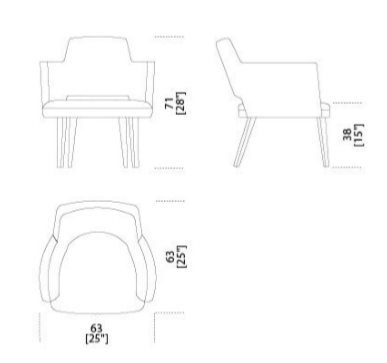 Upholstered armchair covered by fabric or leather. Black (mod. Layer) open pore lacquered ash legs. Seat and backrest covered by fabric or leather as per sample.