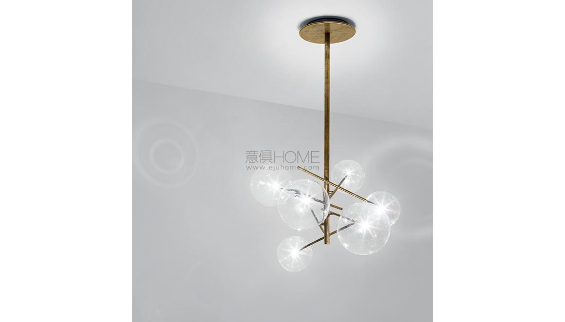 Lampada a sospensione a luce LED (G4 2700 Kelvin). 6 sfere in cristallo trasparente soffiato a bocca. Disponibile anche nella versione con 4 sfere. Parti metalliche in ottone brunito a mano. L’ottone risulta naturalmente macchiato e disomogeneo. Questa lavorazione artigianale conferisce ad ogni pezzo una particolare unicità, rendendolo esclusivo. Luce dimmerabile. L’altezza può essere realizzata a misura, da un minimo di 85cm (Bolle 6) e 73cm (Bolle 4) ad un massimo di 600cm (incluso corpo luminoso)