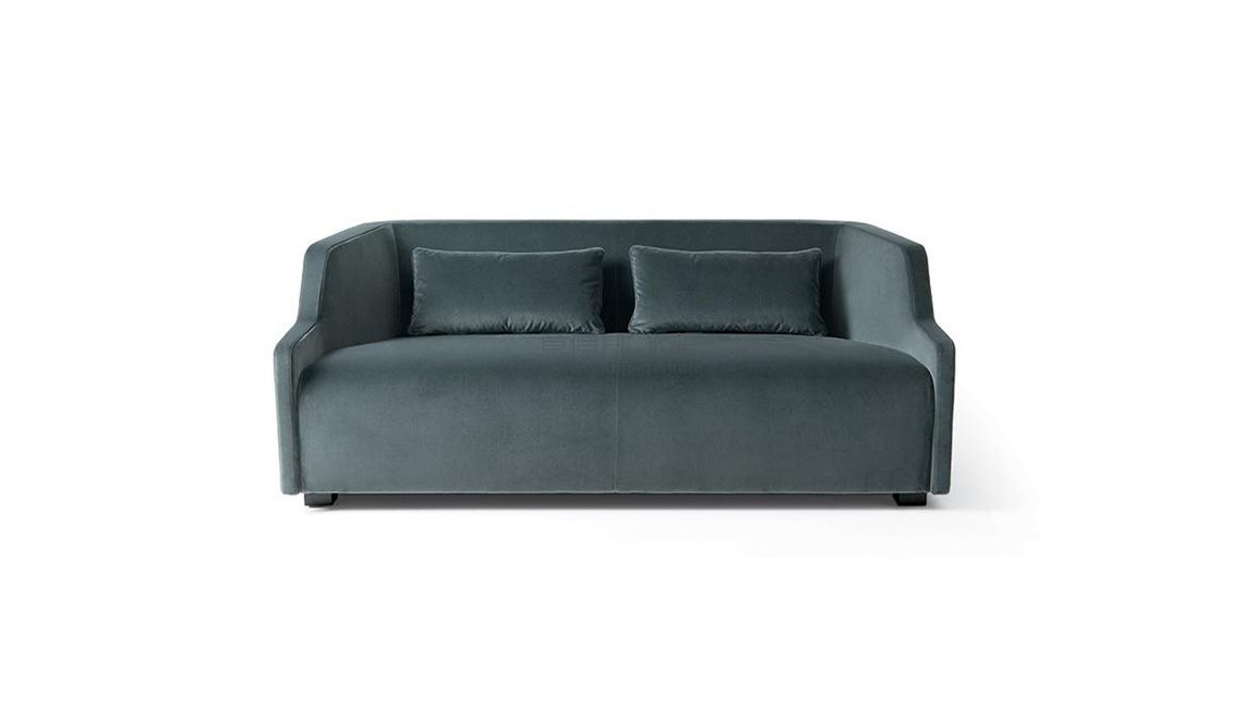 Sofa in non-deformable foam polyurethane in different density and polyester fibre with wooden inside structure. Black lacquered wooden feet. Available covered by fabric or leather. Decorative polyester fibre cushions, on request.