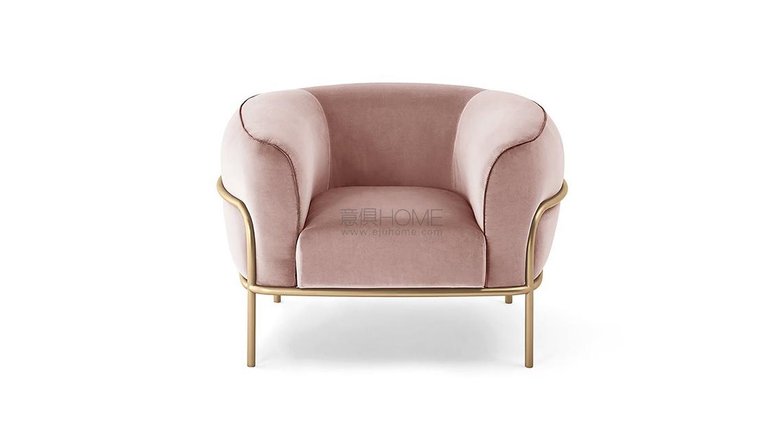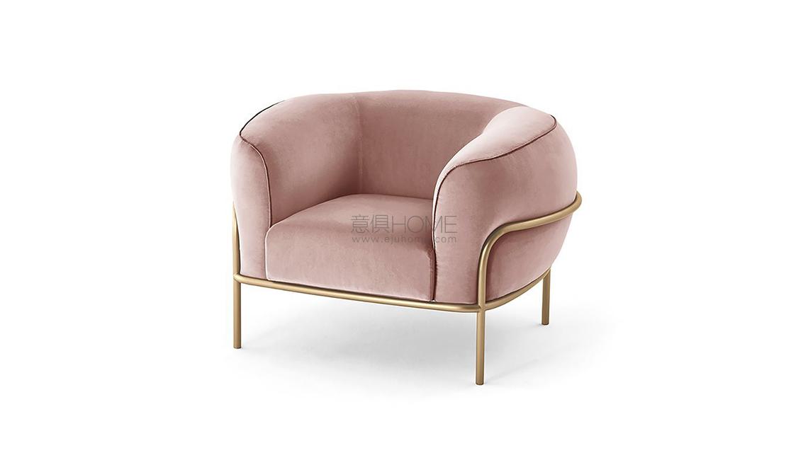 Armchair with foam polyurethane padding. Removable cover in fabric or leather, available as per samples. Metal structure in satin brass plated finish.