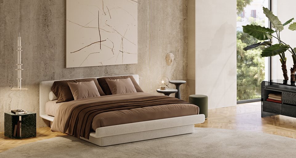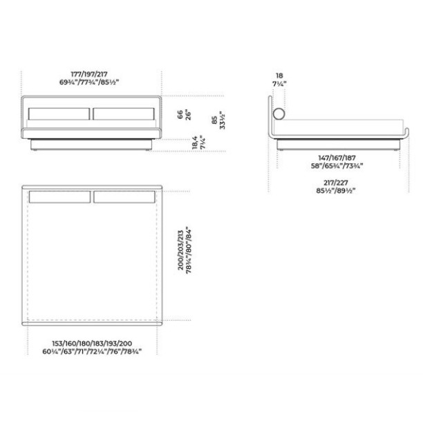 Letto in poliuretano espanso indeformabile a densità differenziate e fibra poliestere con struttura interna in legno. Disponibile con rivestimento sfoderabile in tessuto o pelle nei colori del campionario. Rete a doghe inclusa. Per la realizzazione di elementi con rivestimento in pelle sono necessarie cuciture aggiuntive rispetto gli elementi con rivestimento in tessuto.