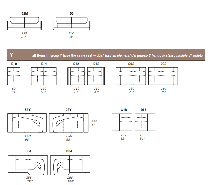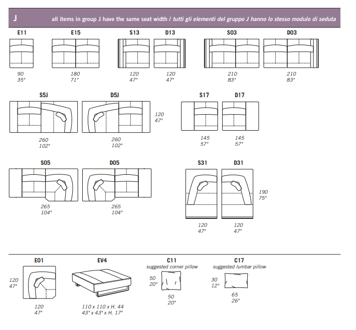 All corner elements E01, S5Y / D5Y, S04 / D04, S5J / D5J and S31 / D31 include one C11 (CUC 515) throw pillow free of charge.
