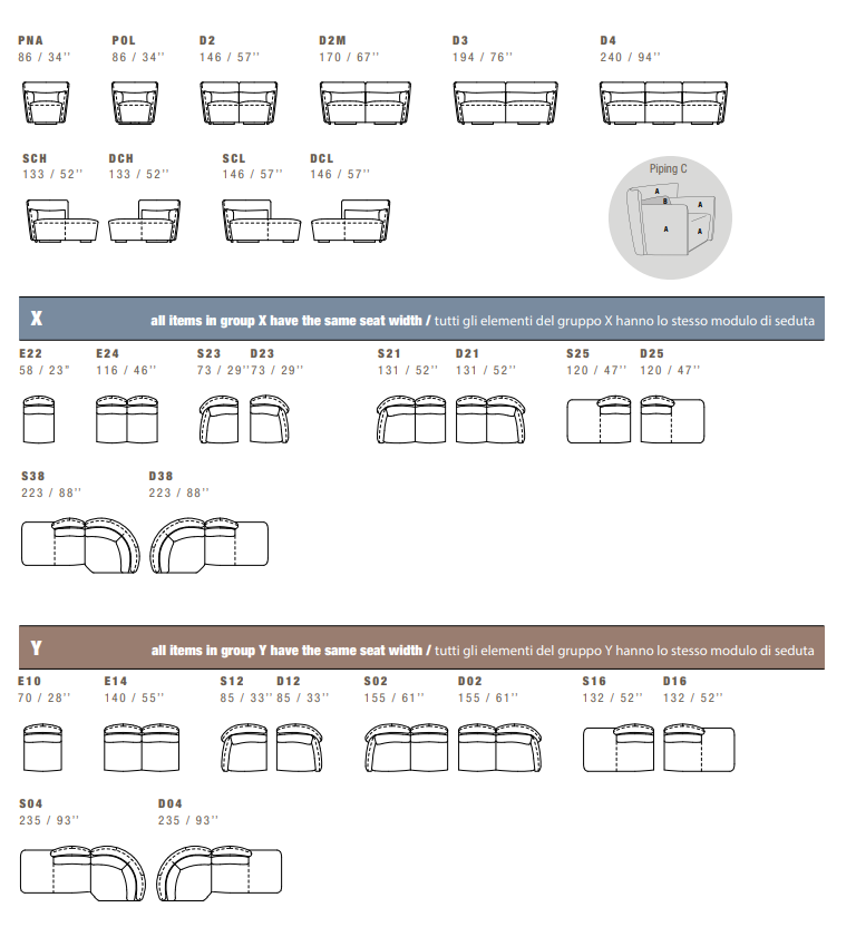 Back cushions in polyurethane covered with dacron wadding.