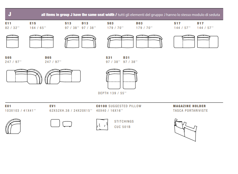 Seat depth 53 cm - 21".