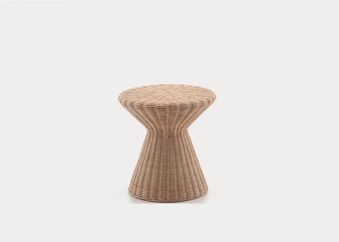 Famiglia di tavolini-pouf interamente realizzata in midollino intrecciato naturale mélange o laccato bianco opaco, grigio, nero, oceano o tortora, è caratterizzata da una forma a clessidra, e da un sapiente gioco di lavorazioni, forme e colori. Risalta grazie alla bellezza dell’intreccio in fibra naturale unita ad un design originale, che conferiscono al prodotto carattere e unicità.