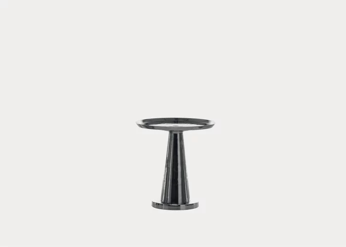 Giochi di luce e di riflessi caratterizzano la famiglia di tavolini Next 141/142/144. Realizzati internamente in fusione di alluminio lucidato, sono disponibili in diverse dimensioni ed altezze e sono caratterizzati da una singola base centrale che sembra sorreggere un vassoio con i bordi leggermente rialzati. La lucidità della superfice permette alla luce ci creare effetti ogni volta diversi.