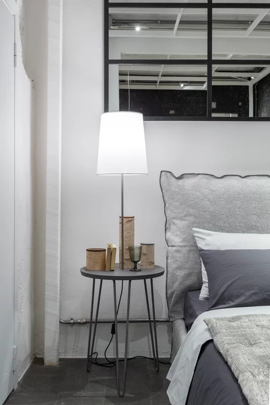 Il tavolino-comodino LC 47 unisce funzionalità ed estetica: lampada-tavolino con un’estetica asciutta che esalta la sua grande leggerezza visiva, realizzata dal connubio tra materiali diversi. Da una parte l’acciaio verniciato bianco o grigio finitura opaca delle gambe e la pergamena bianca del paralume, dall’altra il noce Canaletto naturale, nero, bianco, grigio, oceano o tortora del top.