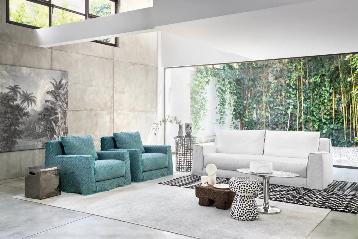Un’idea di comfort contemporaneo è raccontata dalla famiglia di poltrone LOLL 01/05 con struttura in legno massello rivestita in poliuretano espanso ad alta densità. Linee morbide e geometrie essenziali sono il segno distintivo di questa poltrone sfoderabili, caratterizzate da un ampio cuscino di seduta, che accentua la morbidezza del prodotto grazie al soffice strato di piuma d’oca canalizzata presente anche nello schienale.