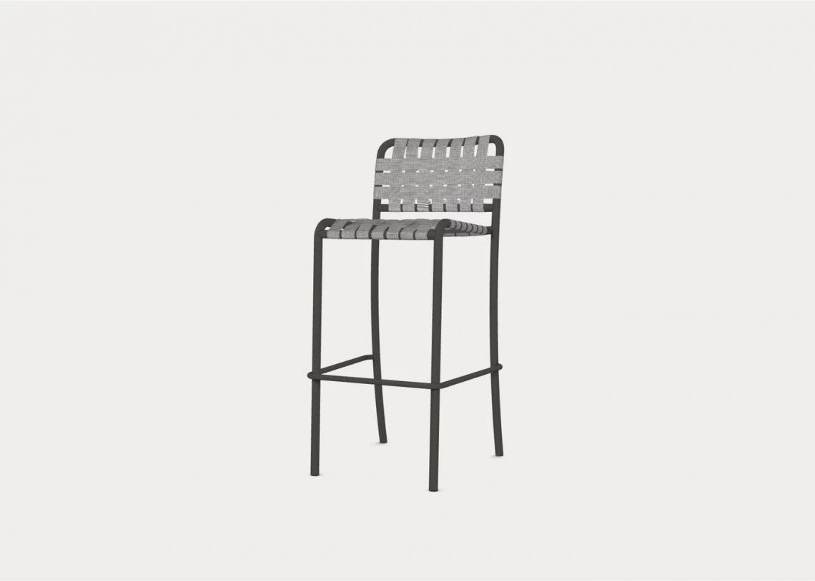 Sgabello caratterizzato da struttura essenziale e minimal, Inout 828si sviluppa attorno ad una leggera struttura in tubolare di alluminio verniciato goffrato nei colori Pearl, Oxido, Agate o Slate, materiale ecologico ed unico per qualità tecniche. A questo si aggiunge un particolare intreccio in cinghia elastica grigia, nera, blu o tabacco, un prodotto innovativo a base di gomma sintetica e propilene.