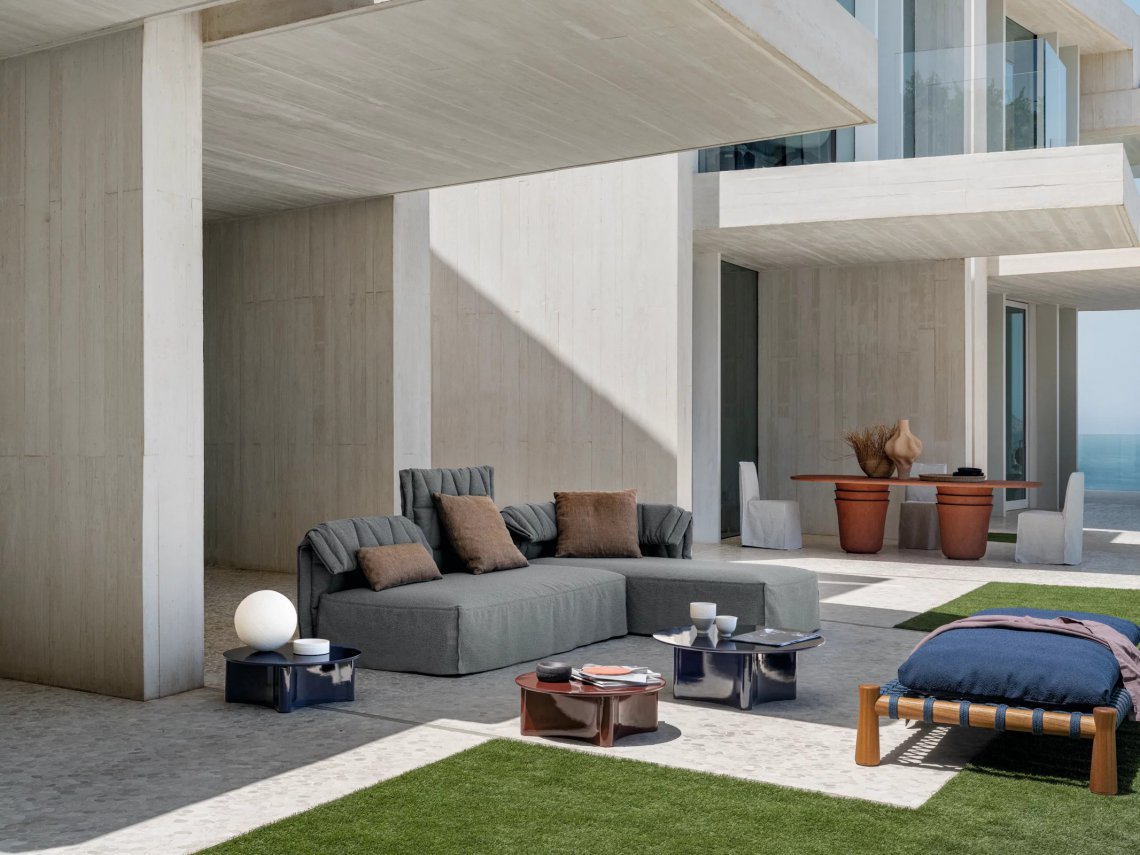 Tradizionale lettino indiano dalle proporzioni basse e ampie, il charpoy viene reinterpretato da Chiara Andreatti attraverso l’utilizzo di corde nautiche color Natural, Red e Blue, intrecciate manualmente alla struttura in legno di Iroko trattato per outdoor, caratterizzata dal particolare disegno svasato delle gambe, su cui poggiano cuscini di seduta. Disponibile in due misure 195x95 e 120x100 per movimentare lo spazio.