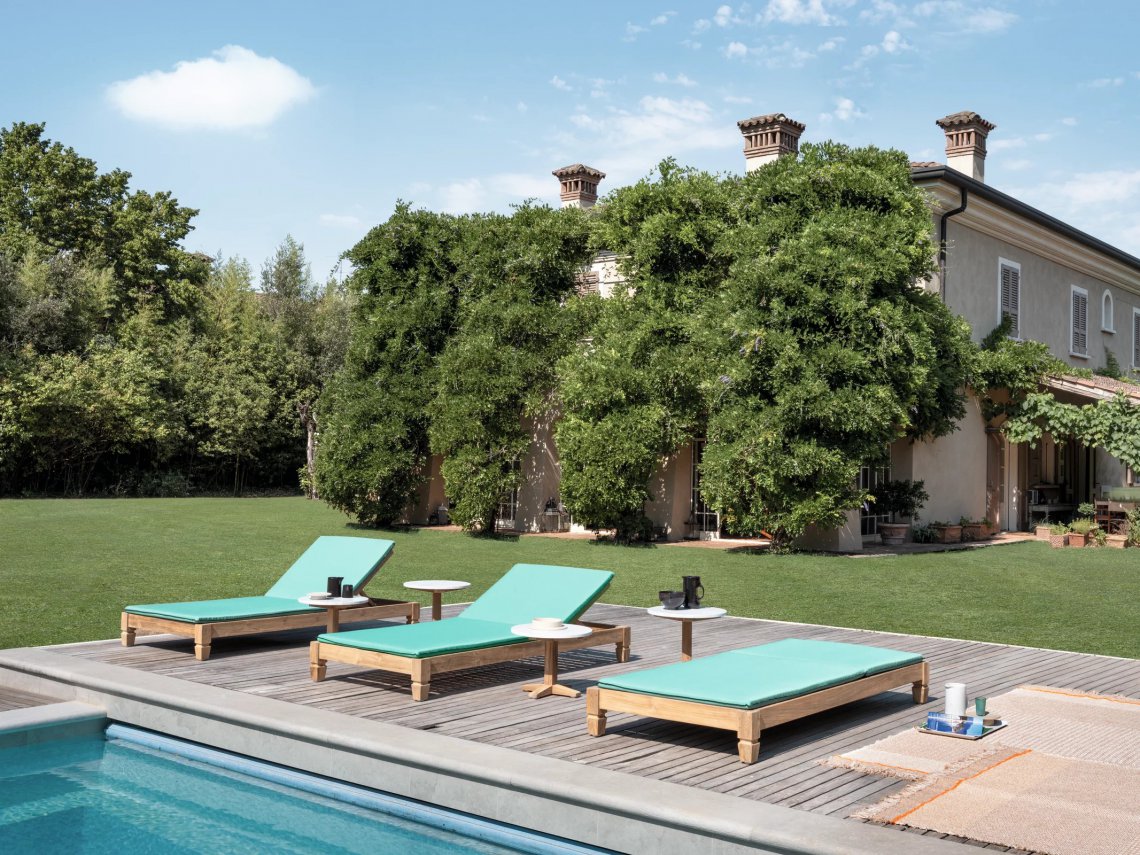 Lettino in stile coloniale di ispirazione esotica, Jeko 81 ha una struttura realizzata in ECOTeak, materiale proveniente dal riutilizzo di travi ed elementi in teak recuperati, riparati con legno riciclato, assemblati e levigati per evidenziare le venature originali. Materasso da 92x202 cm, sfoderabile.