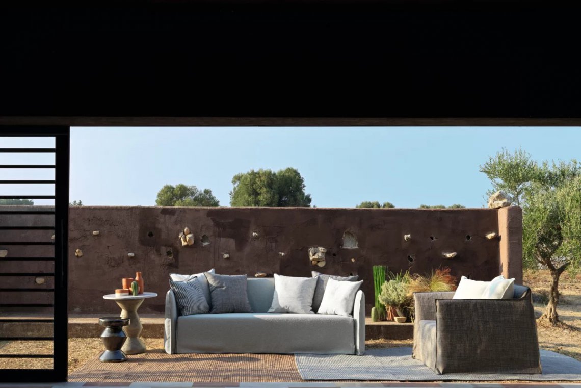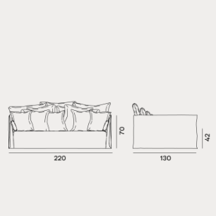 Famiglia di divani imbottiti e sfoderabili, Ghost Out 10/12/16 vantano una seduta comoda ed avvolgente che si sviluppa attorno ad una leggera scocca dai volumi essenziali. Ideati per resistere all’acqua e alla luce solare e per mantenere nel tempo la loro forma e la loro estetica, sono disponibili in diverse dimensioni, da due o da tre posti e con differenti profondità di seduta. Sono caratterizzati da una struttura geometrica in cui la morbidezza è accentuata da cuscini volanti. Caratteristica principale è il rivestimento: una housse oversize il cui profilo è sottolineato dalle cuciture a vista, per svestirsi con facilità e assumere un’immagine ogni volta diversa.