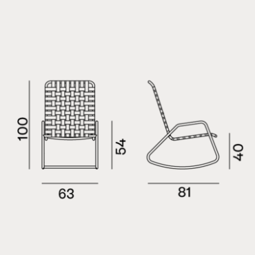 La struttura essenziale e minimal a vista denota il dondolo Inout 809 che si sviluppa attorno ad una leggera struttura in tubolare di alluminio verniciato goffrato in Pearl, Oxido, Agate o Slate. Materiale ecologico ed unico per qualità tecniche, evidente nelle gambe di forma trapezoidale. A questo si aggiunge un particolare intreccio in cinghia elastica grigia, nera, blu, tabacco, un prodotto innovativo a base di gomma sintetica e propilene.