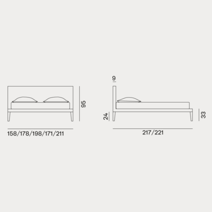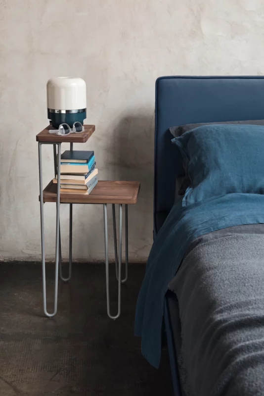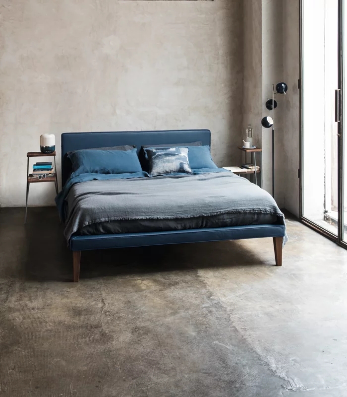 Un letto essenziale, Cocò è adatto a qualsiasi ambiente, poetico, iconico e familiare. Rialzato da terra, ha un giroletto smontabile e una testiera sottili con piping a vista, disponibile in colori a contrasto per disegnare il profilo del letto. Imbottito sfoderabile con rivestimento disponibile in tessuto o ecopelle. I piedini in legno massello si declinano in diverse finiture: dal noce naturale, a quello tinto nero, bianco, grigio, oceano o tortora.