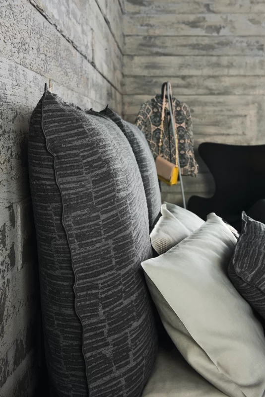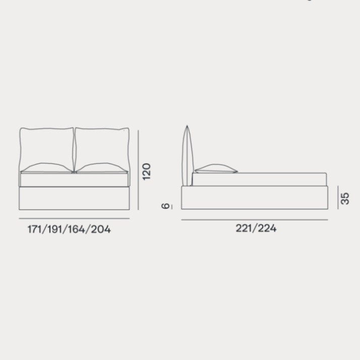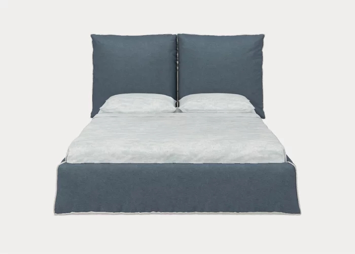 Forme morbide e rassicuranti che invitano al relax caratterizzano Double, letto imbottito sfoderabile, che si presenta con una grande testiera con due ampi cuscini oversize. Double è un letto tessile dal fascino classico, disponibile con piedini a vista in legno massello in noce naturale, nero, bianco, grigio, oceano o tortora e con eventuale rivestimento a fondo libero fino a terra.