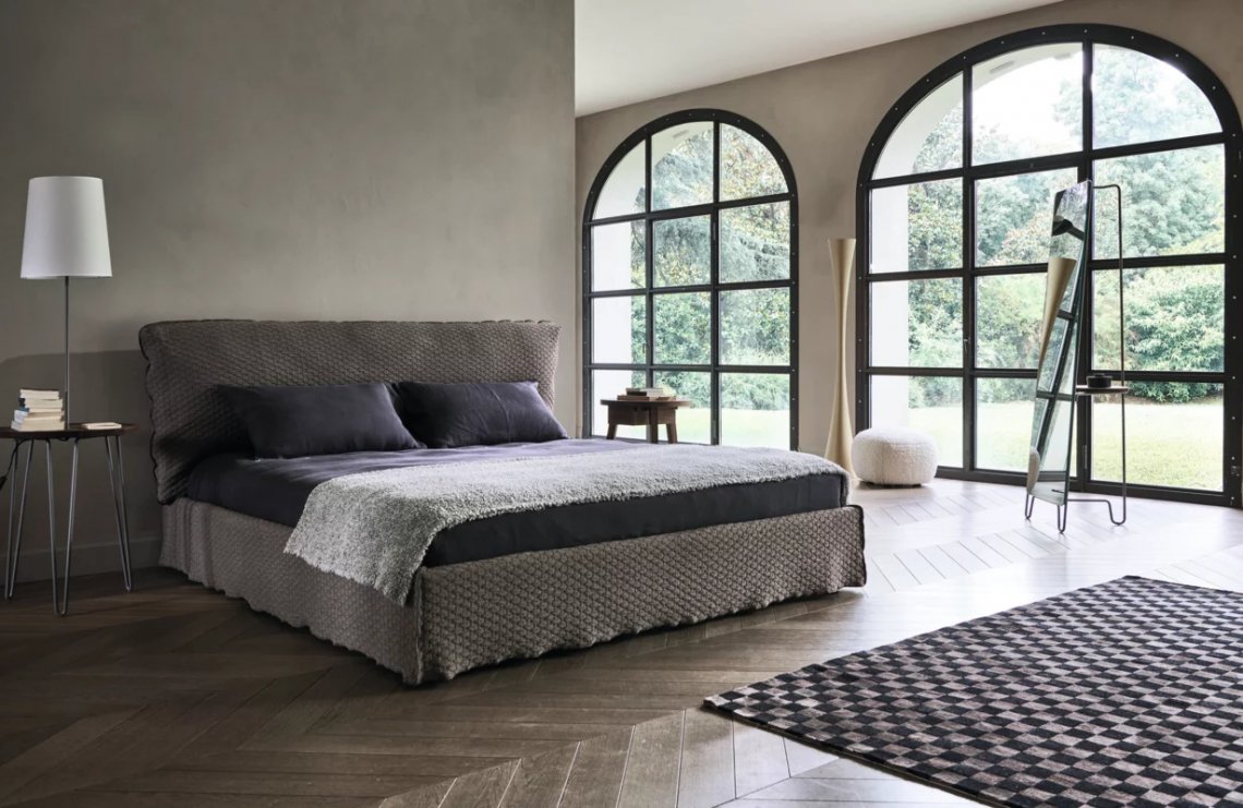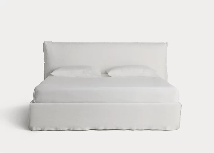 Linee morbide e accoglienti e un profilo taglia e cuci definiscono il letto LOLL 80. Proposto in varie misure, dalla versione matrimoniale standard, alle varianti queen o king size, Loll 80 ha un giroletto smontabile, contraddistinto dal leggero rivestimento sfoderabile che sembra sfiorare terra, che si abbina inoltre ad una confortevole testiera imbottita. Disponibile a scelta con vano contenitore.