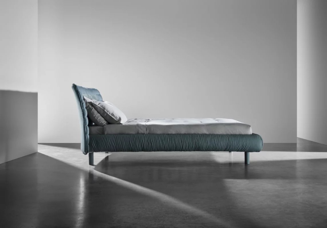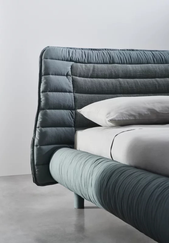 Letto imbottito con giroletto smontabile. Testiera in poliuretano su struttura in legno multistrato curvato. Rivestimento della testiera e del giroletto sfoderabile in tessuto trapuntato. Supporti rete regolabili in diverse altezze. Piedini in legno rivestiti in tessuto. Disponibile in tutti i tessuti di campionario eccetto 3D, Quilt Malta e Quilt Velour.