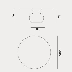 Un’audace combinazione di materiali contraddistingue la famiglia di tavoli Moon 34-36: la base in ceramica blu a forma di anfora, caratterizzata da una superficie materica irregolare ottenuta con una particolare finitura a mano, è abbinata ad un top rotondo, realizzato in fusione di alluminio o marmo bianco di Carrara.