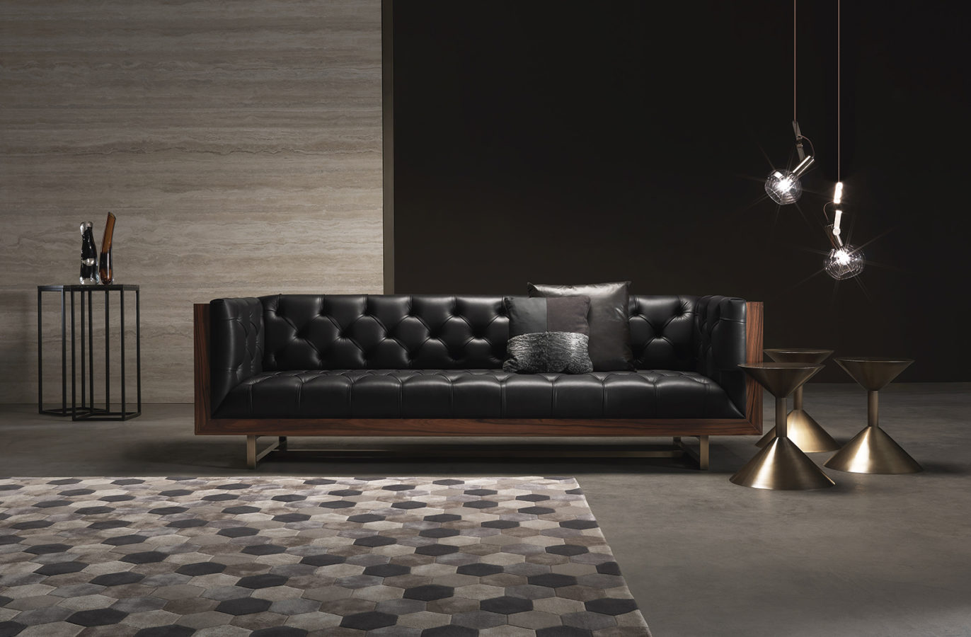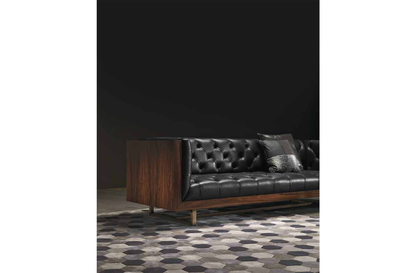 3-seater sofa with structure in veneered rosewood. Upholstery in leather cat. A | L.02.05. Base in bronzed brass.