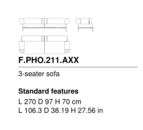 Seat padded in expansive polyurethane foam and Dacron. Armrests and backrest with metallic inserts