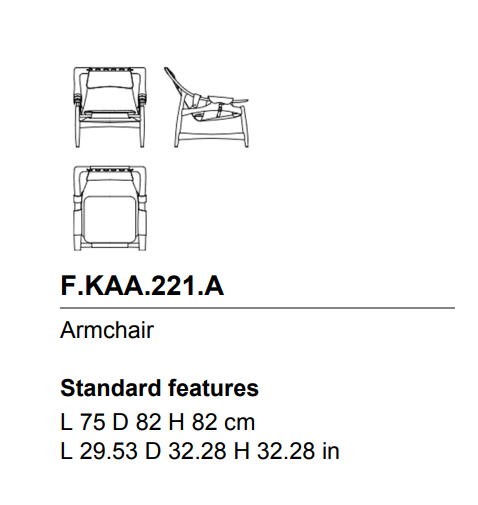 Retro style and metropolitan spirit for the Kalamaja armchair. The solid structure in beech wood meets the lightness of the suspended leather seat, supported by the armrests with characteristic straps. A furnishing element in typical Mid-century style that fits perfectly into urban decor environments.
