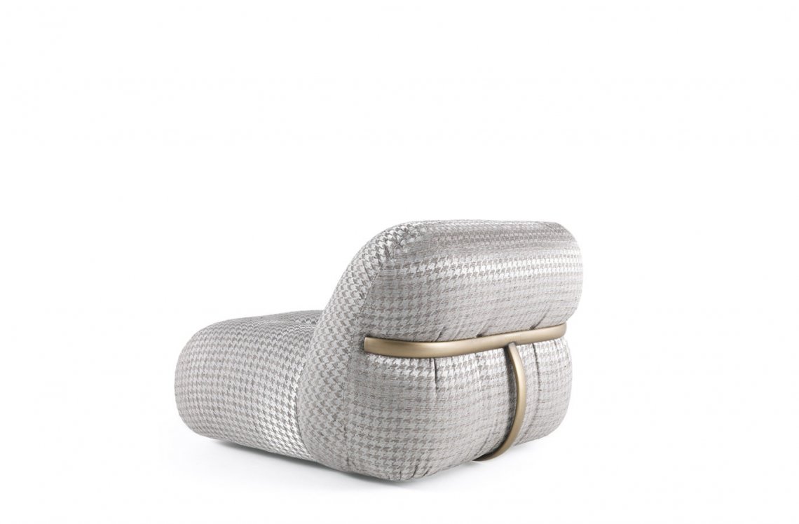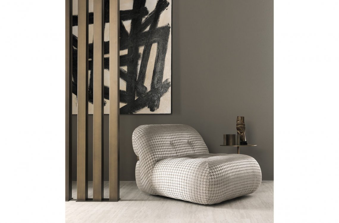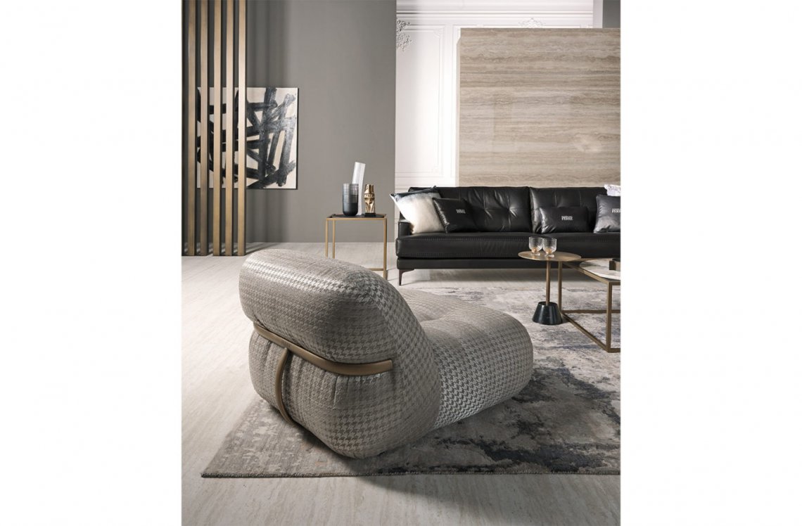 Soft shapes and sophisticated elegance for Leith armchair, characterized by a refined aesthetic language that is expressed in the flawless tailoring, in the compact proportions and in the details with strong visual impact. The upholstery adds a note in typical Gianfranco Ferré Home style.