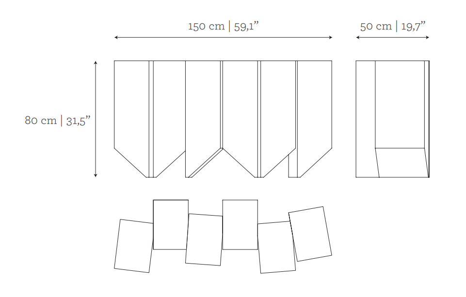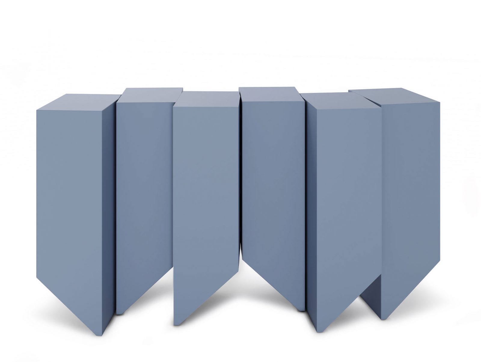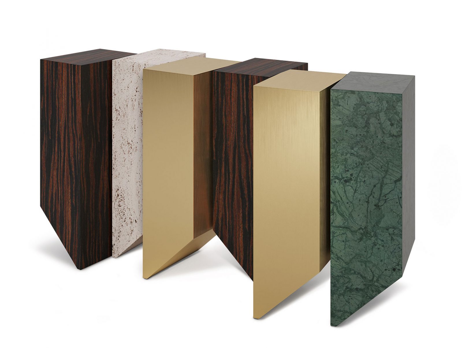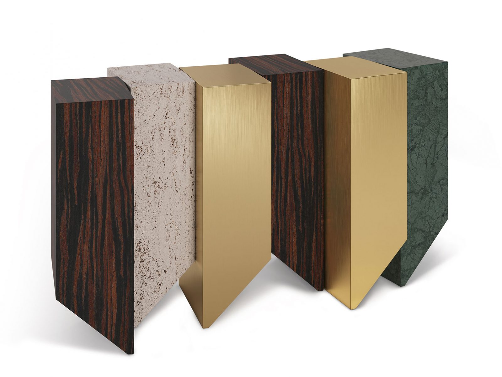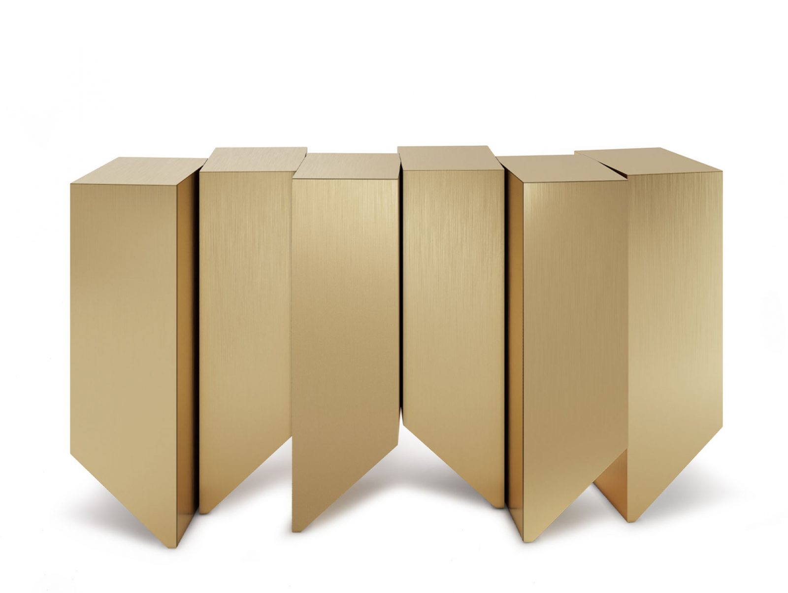 The Geode Console is reminiscent of deep ridges and mineral formations. The earth-like natural variation of the materials of each section make each design unique, threading the needle between function and art. The sculptural and geometric nature of the Geode is perceivable through its layered composition, minute details and angles.