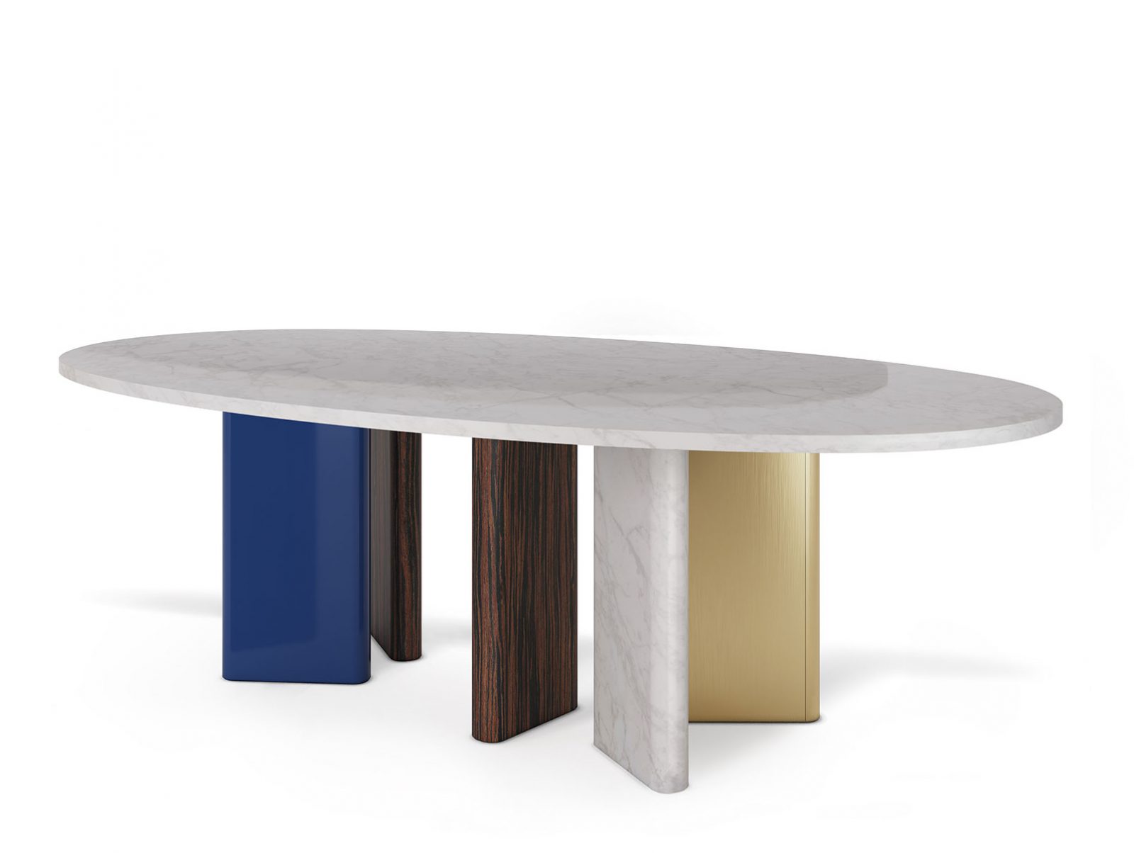 The Peninsula is a functional oval top dining table designed to be the protagonist of a space. Boldly proportioned, the design is different depending on the point of view, and creates a conversation between different materials. Seating six people, the Peninsula is a sculptural presence where life is to be celebrated and experienced in communion.