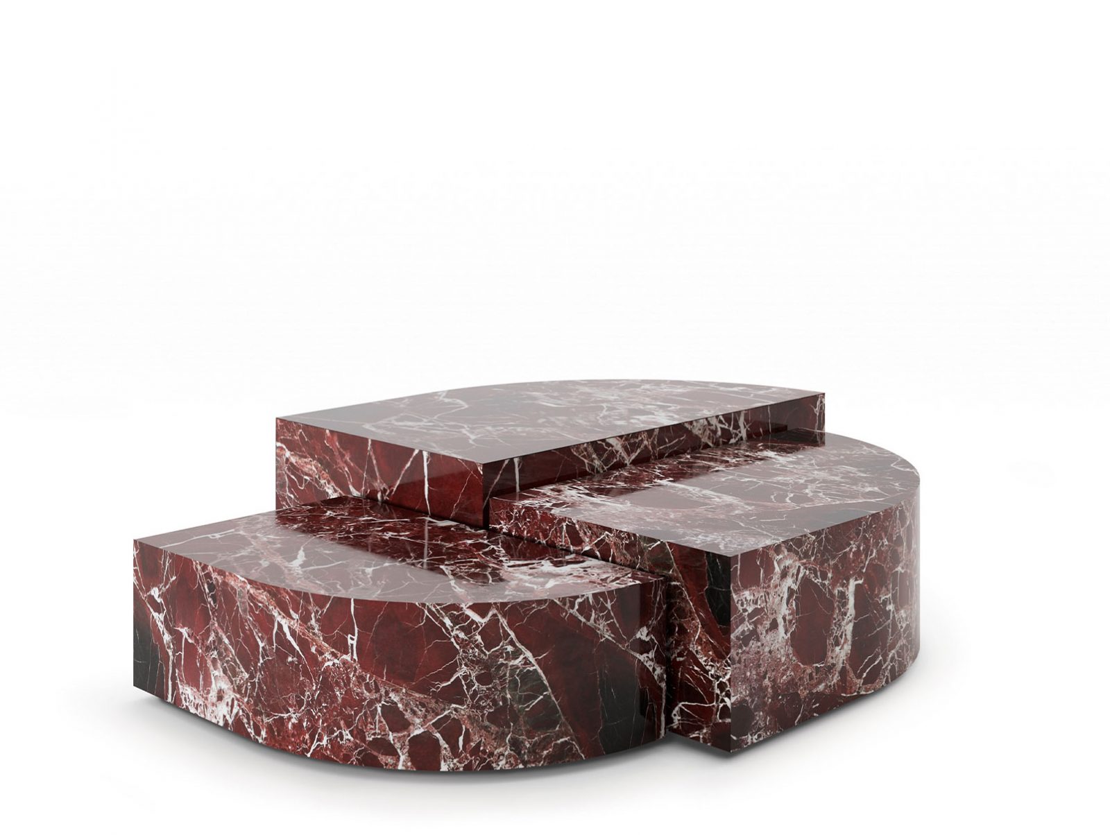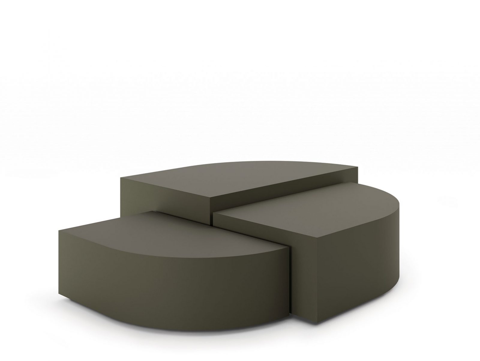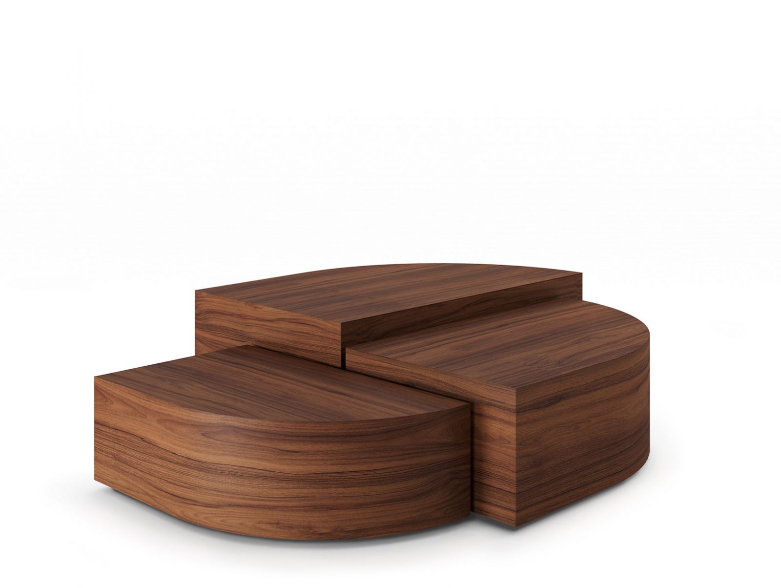 The Strata Coffee Table evokes the layers of rock and sediment that form in the earth with the passing of time. The three separate tables form an ensemble that can be set in different angles and positions, creating a soothing presence. Crafted from a wide range of materials, the Strata can convey different feelings, much like the Earth’s surfaces – rougher when in travertine, or smoother when in wood veneer.