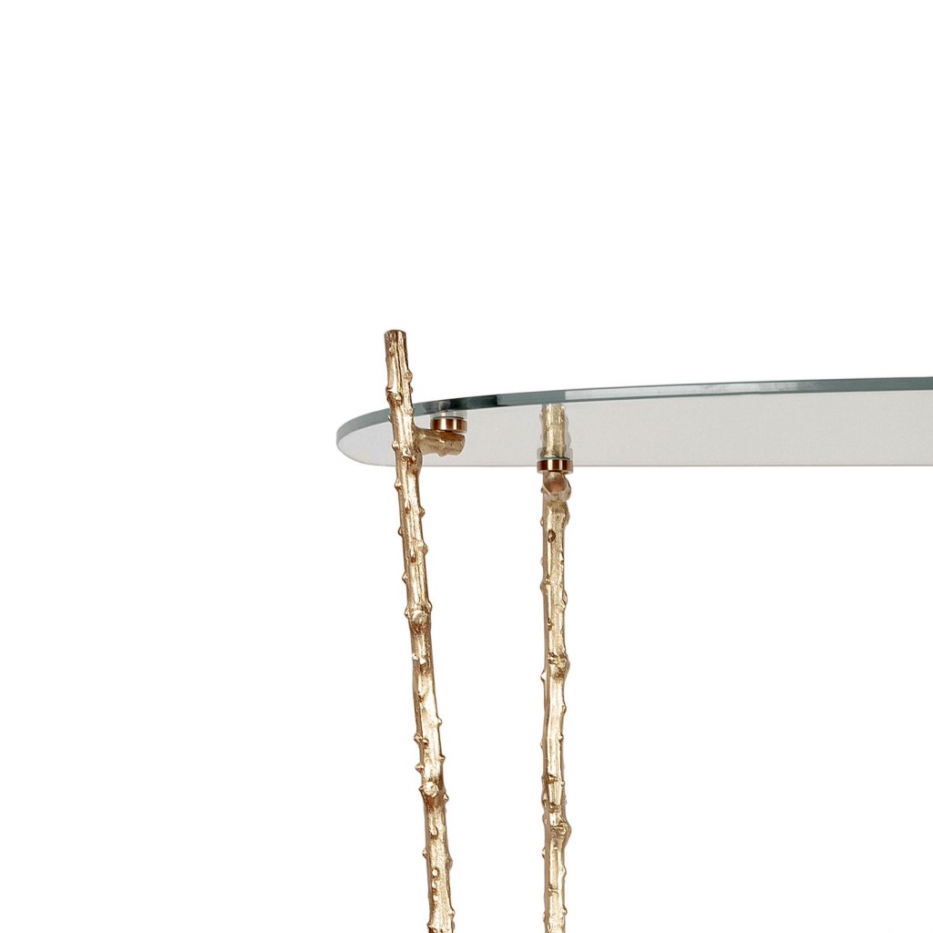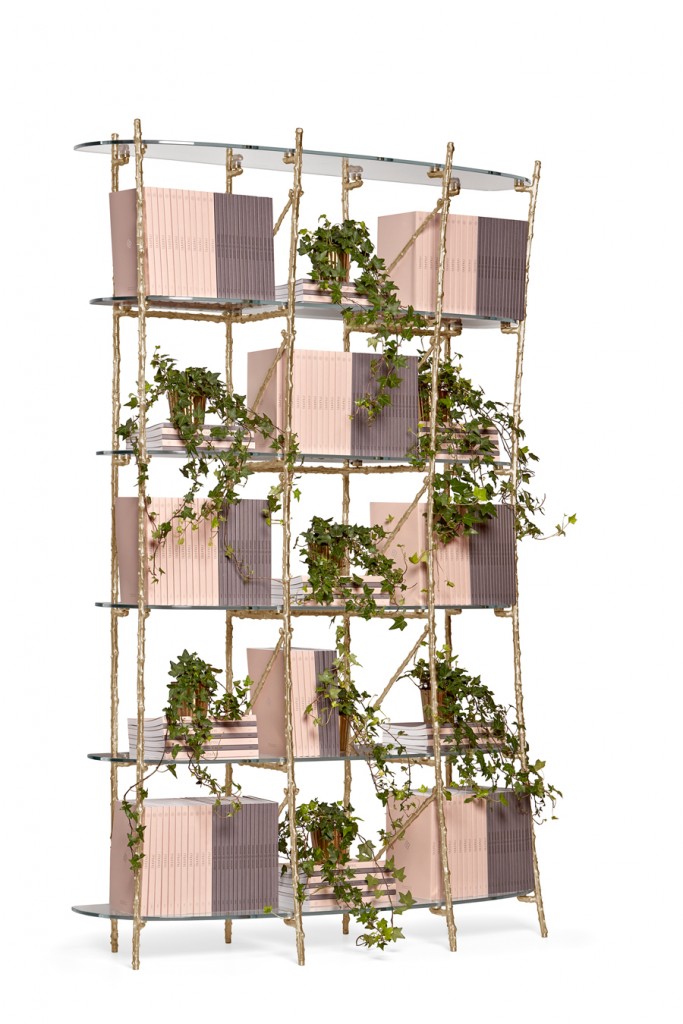 A monument to artisanal wisdom, the Flora Bookcase stands as a graceful memento of branches springing from a quiet river bank. Designed to be filled with ideas, it’s structure is made of tree branches molded in cast brass, with glass shelves that give it a profound sense of lightness.