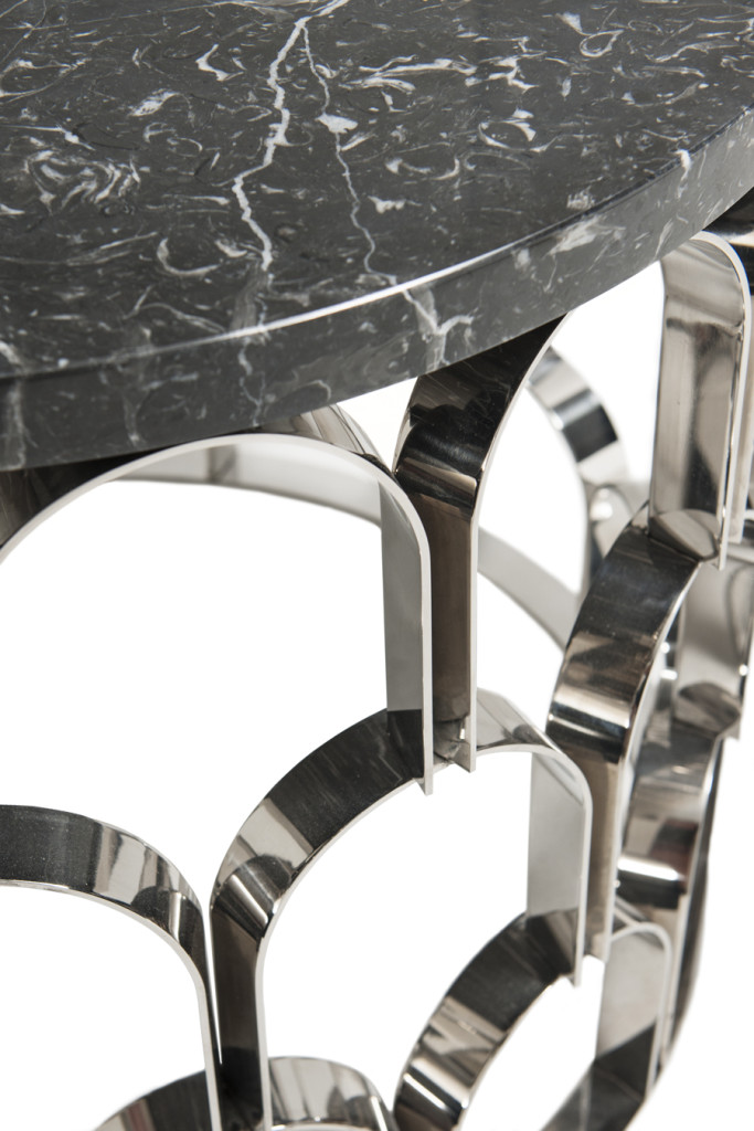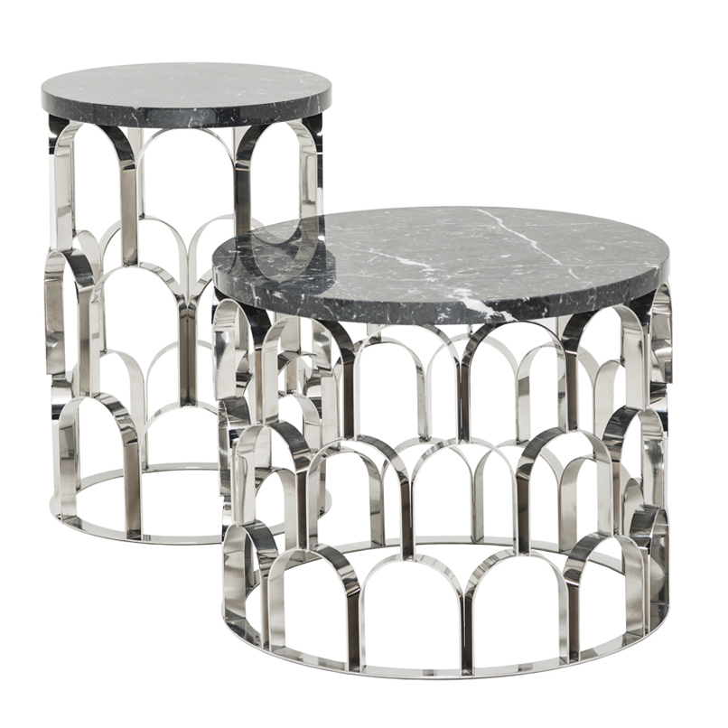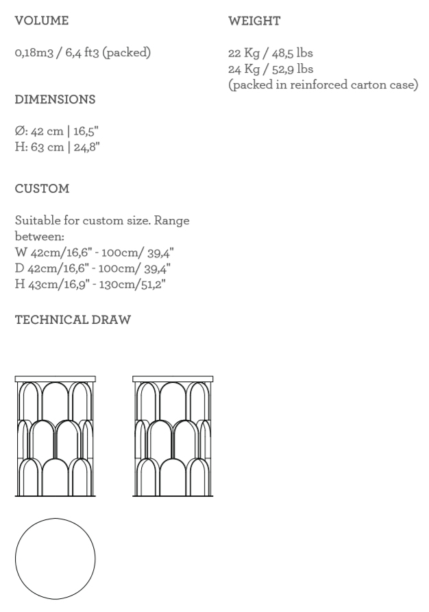 The texture of the pineapple is reinterpreted in a three-dimensional geometrical pattern with a seductive and alluring marble top. The piece creates a subtle dance between light and shadow, opacity and transparency.