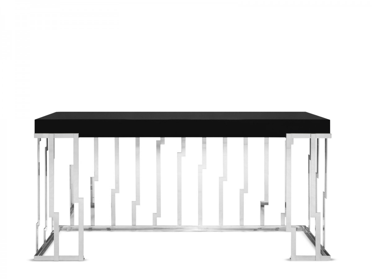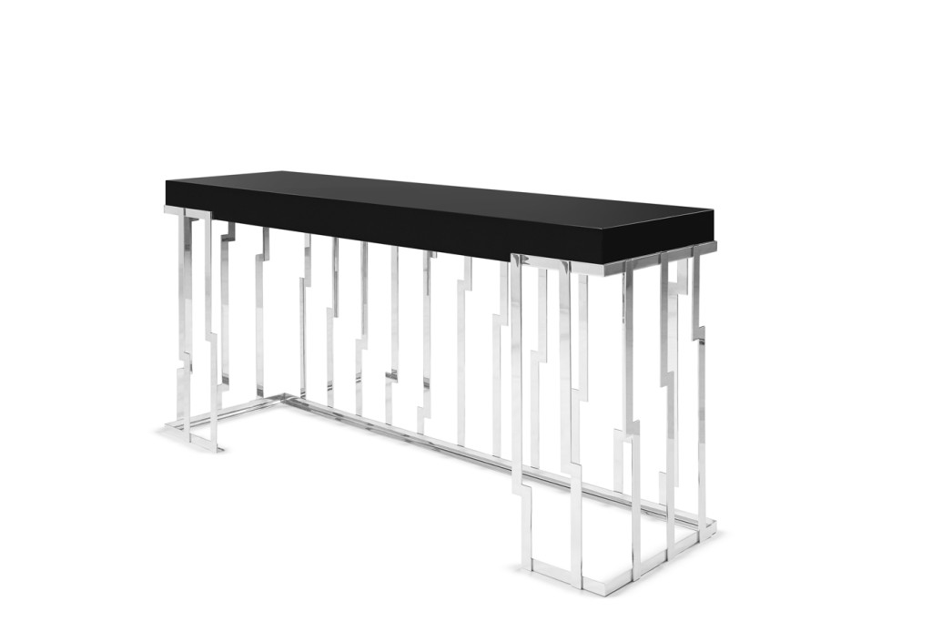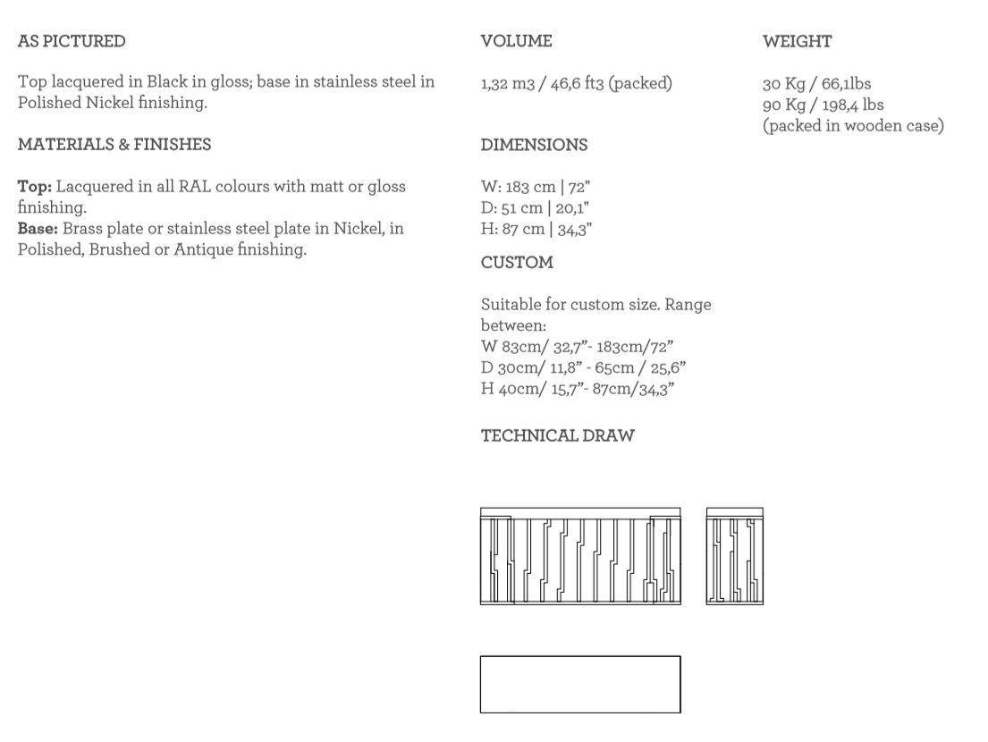 The everlasting encounter between the sea and the land is captured by the geometrical pattern of the metal structure of the Cliff Console. This abstract composition mirrors the repetition of shapes found in Nature. The piece is balanced by a simple and delicate lacquered top.
