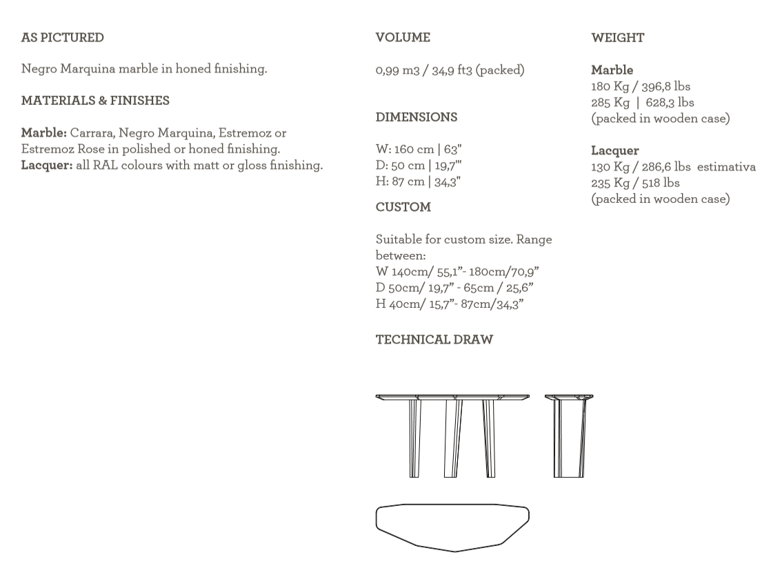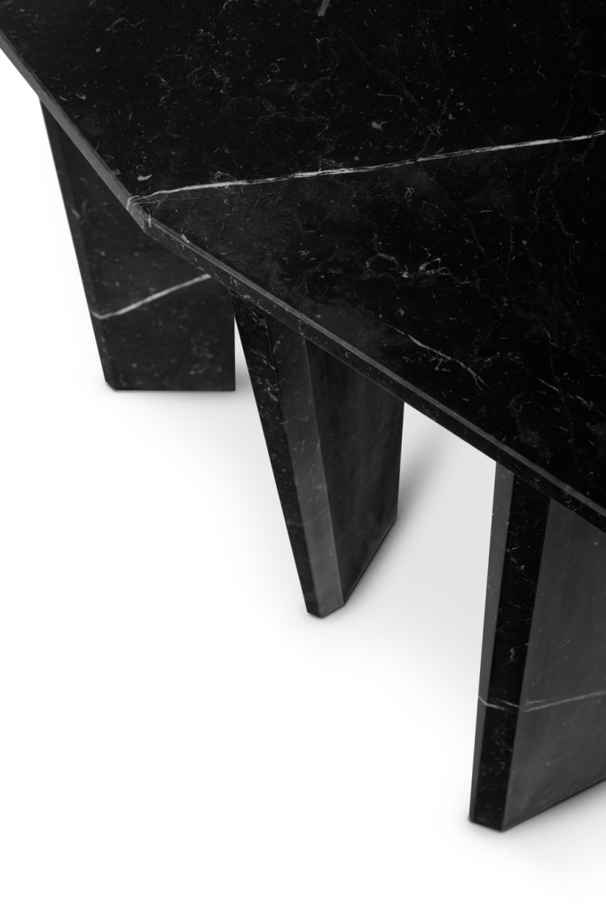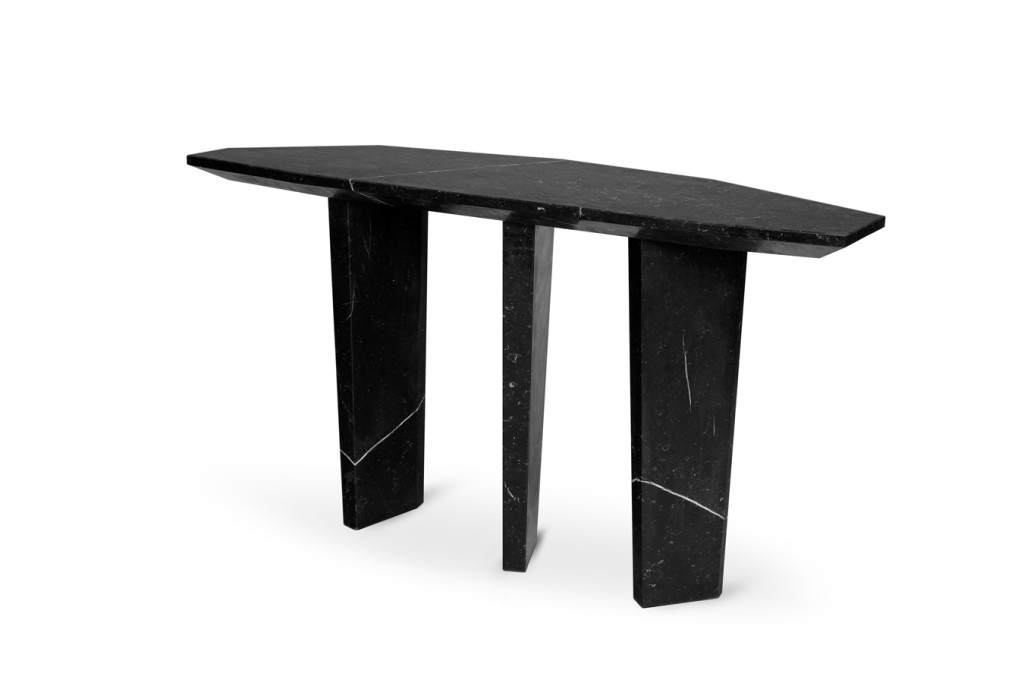 This minimalistic, albeit intricate, piece is handcrafted in marble. Its form is reminiscent of megalithic monuments, portals to an evocative poetic realm, here captured by the seemingly counterintuitive geometry and sculptural shape.