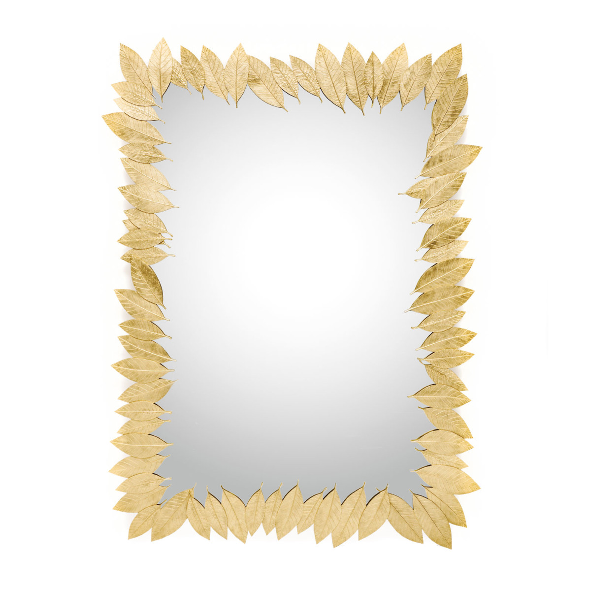 The Leaf mirrors’ golden frame, made from leaves molded in brass casting, evokes the falling of autumn leaves around a pond. The leaves are assembled by hand by artisans.
