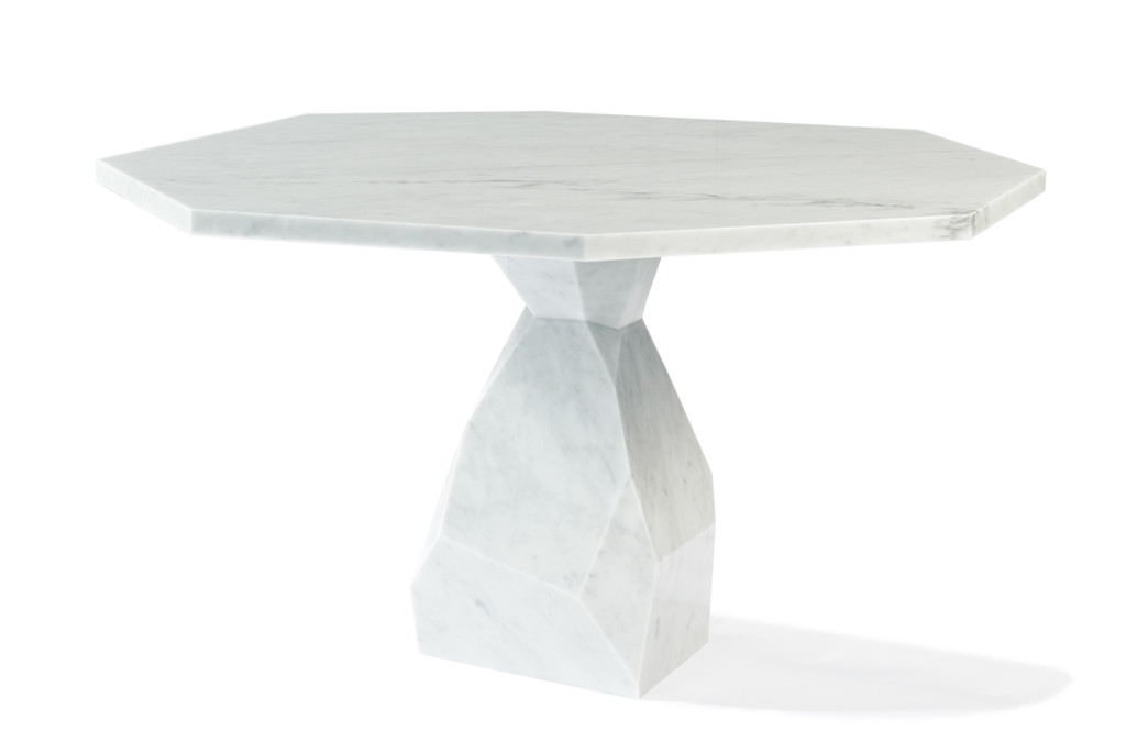 Encapsulating the commanding presence of Nature, the Rock Dining Table is a bold design statement. Made from a single block of marble, the Rock is a soothing yet unmistakable presence. The likeness of its faceted geometry can be found in Nature in raw form.